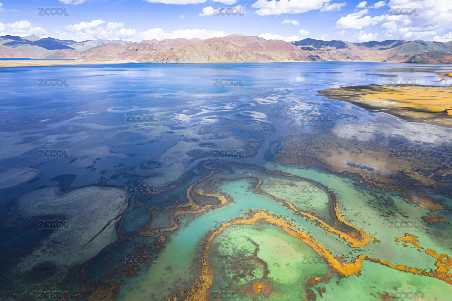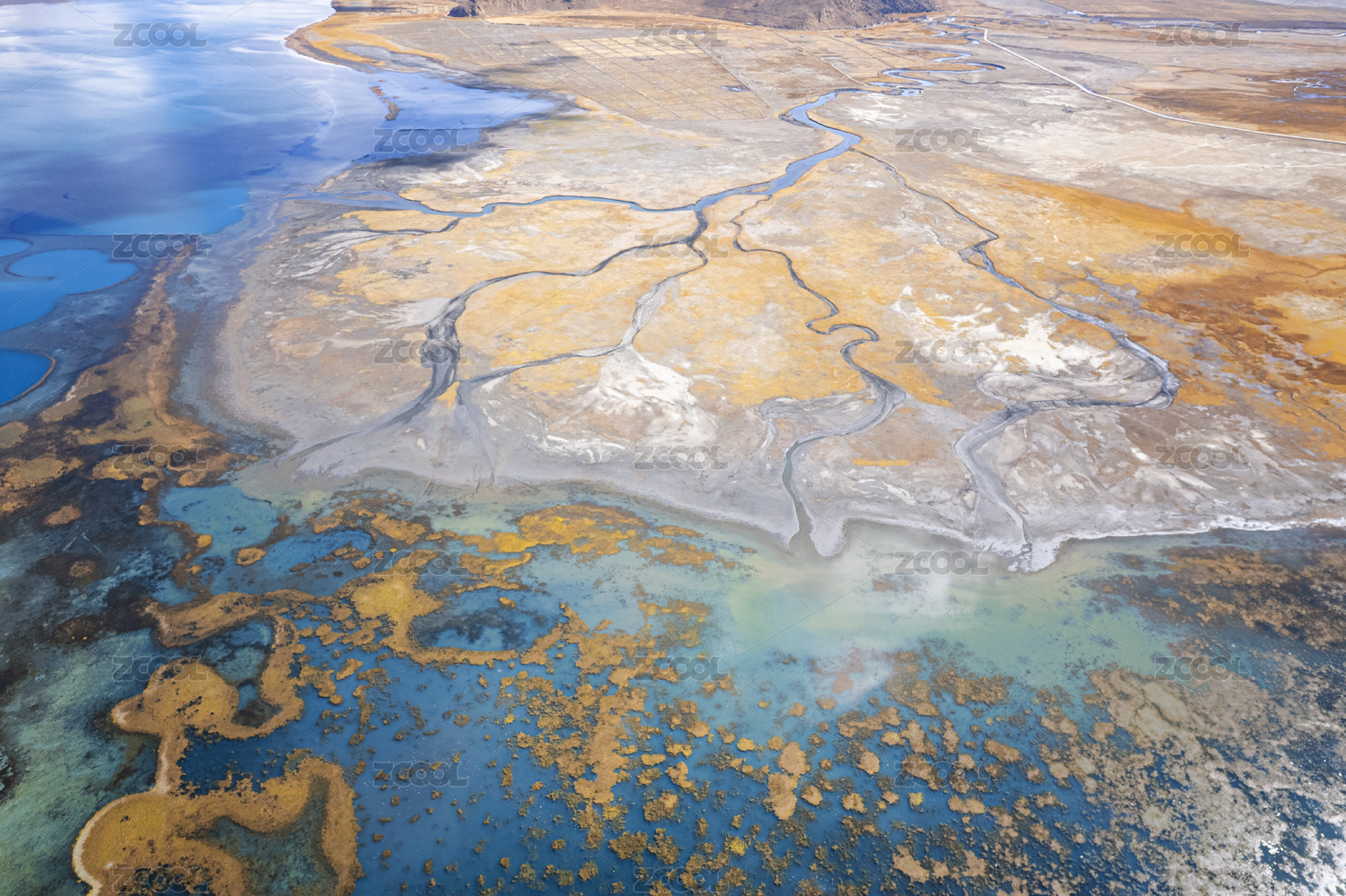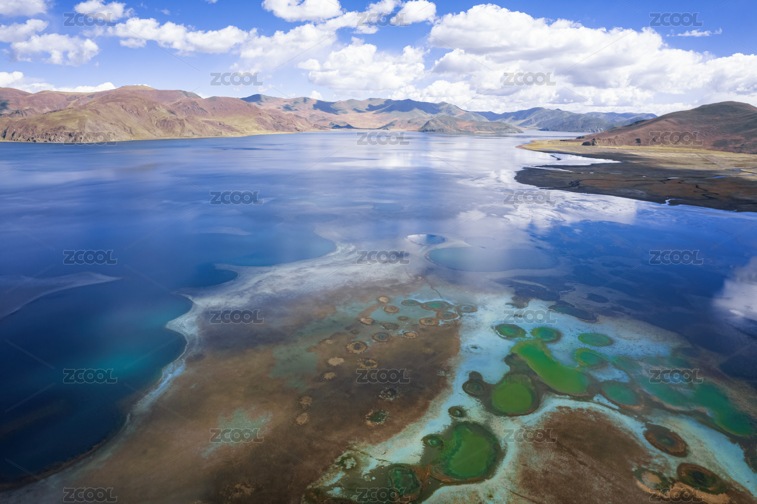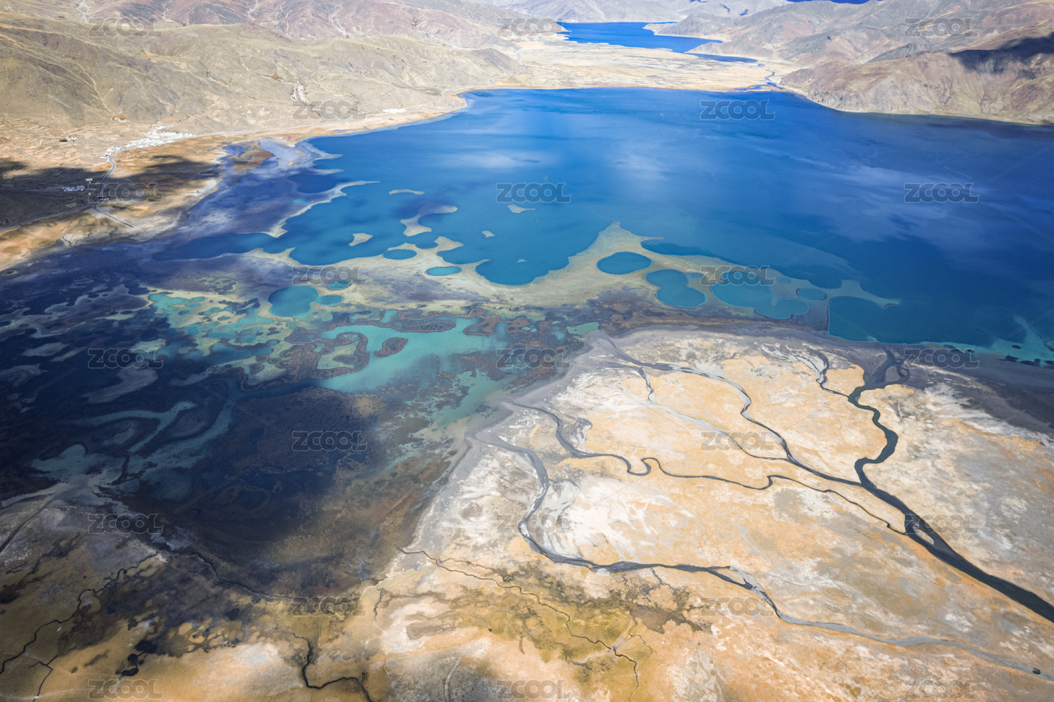 中國(guó)西藏羊湖羊卓雍措河流三角洲與淺灘灘涂