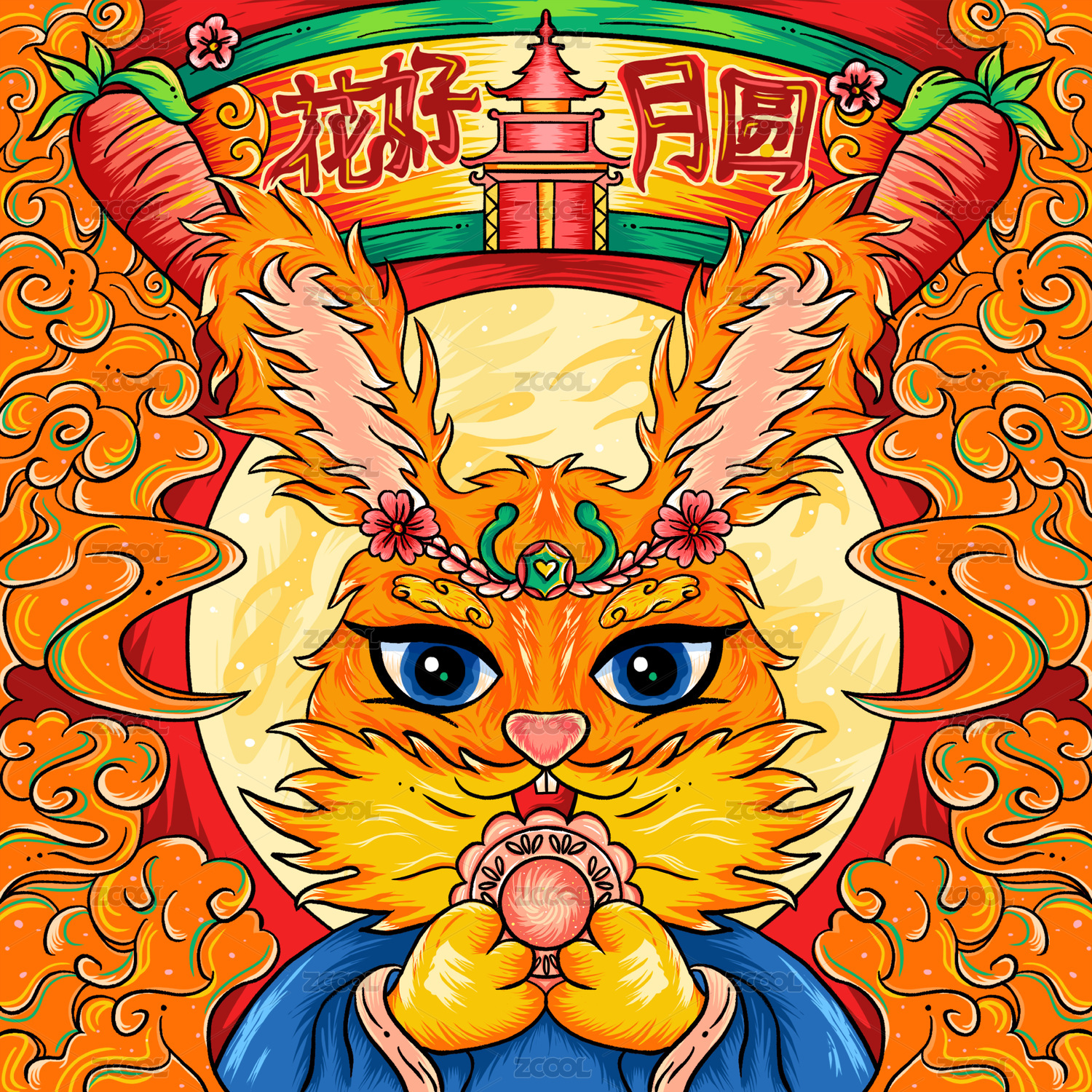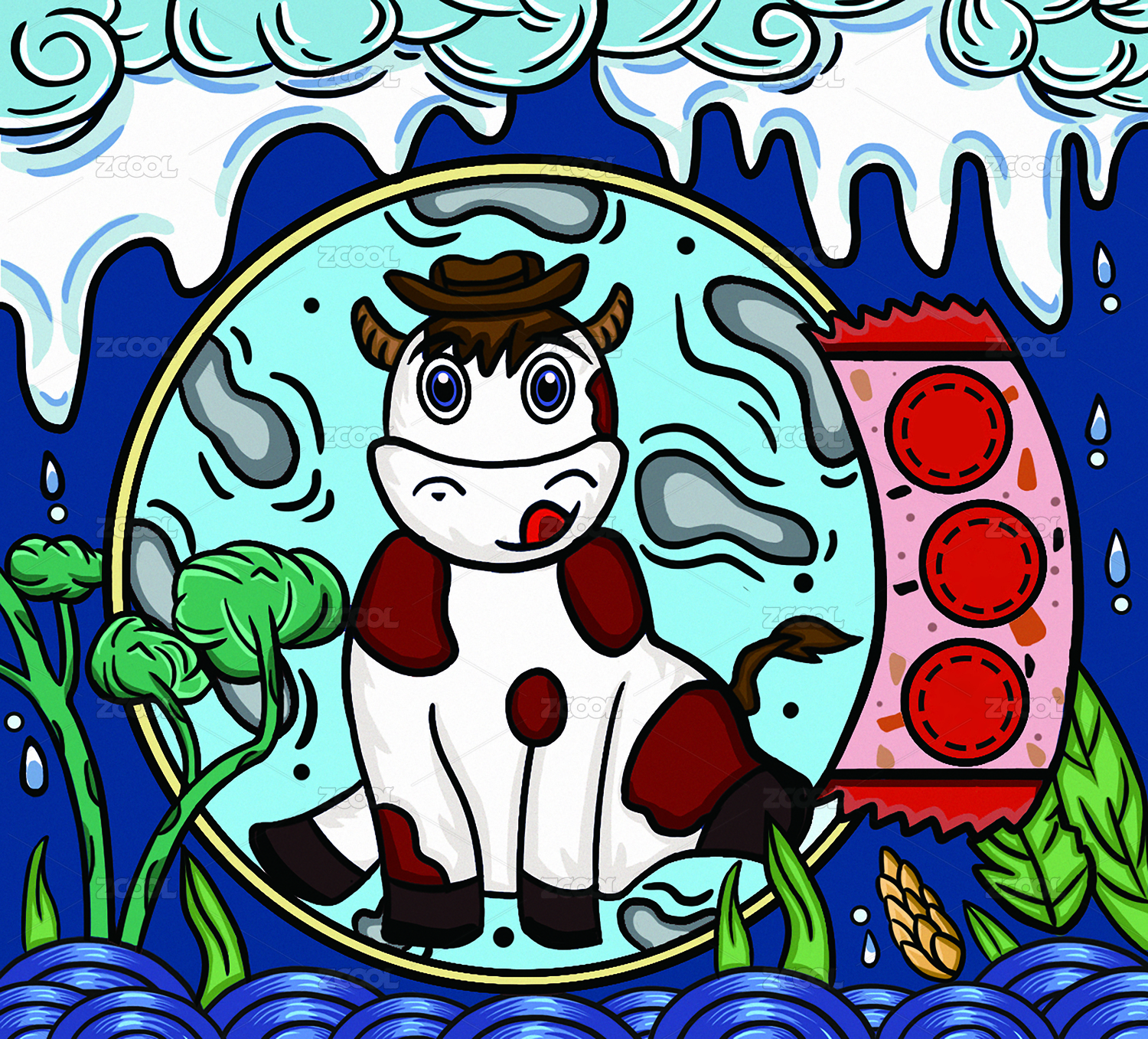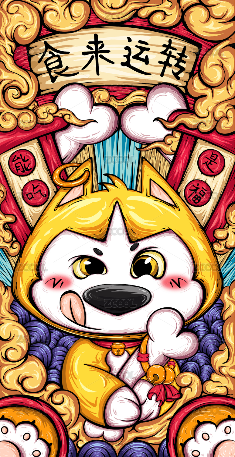 國潮插畫食來運轉(zhuǎn)