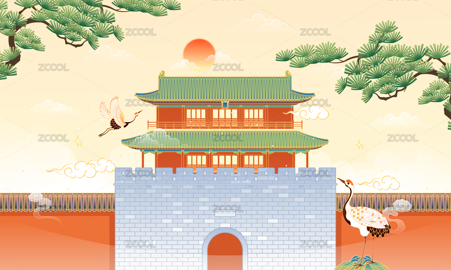 河北石家莊正定古城南城門建筑矢量插畫