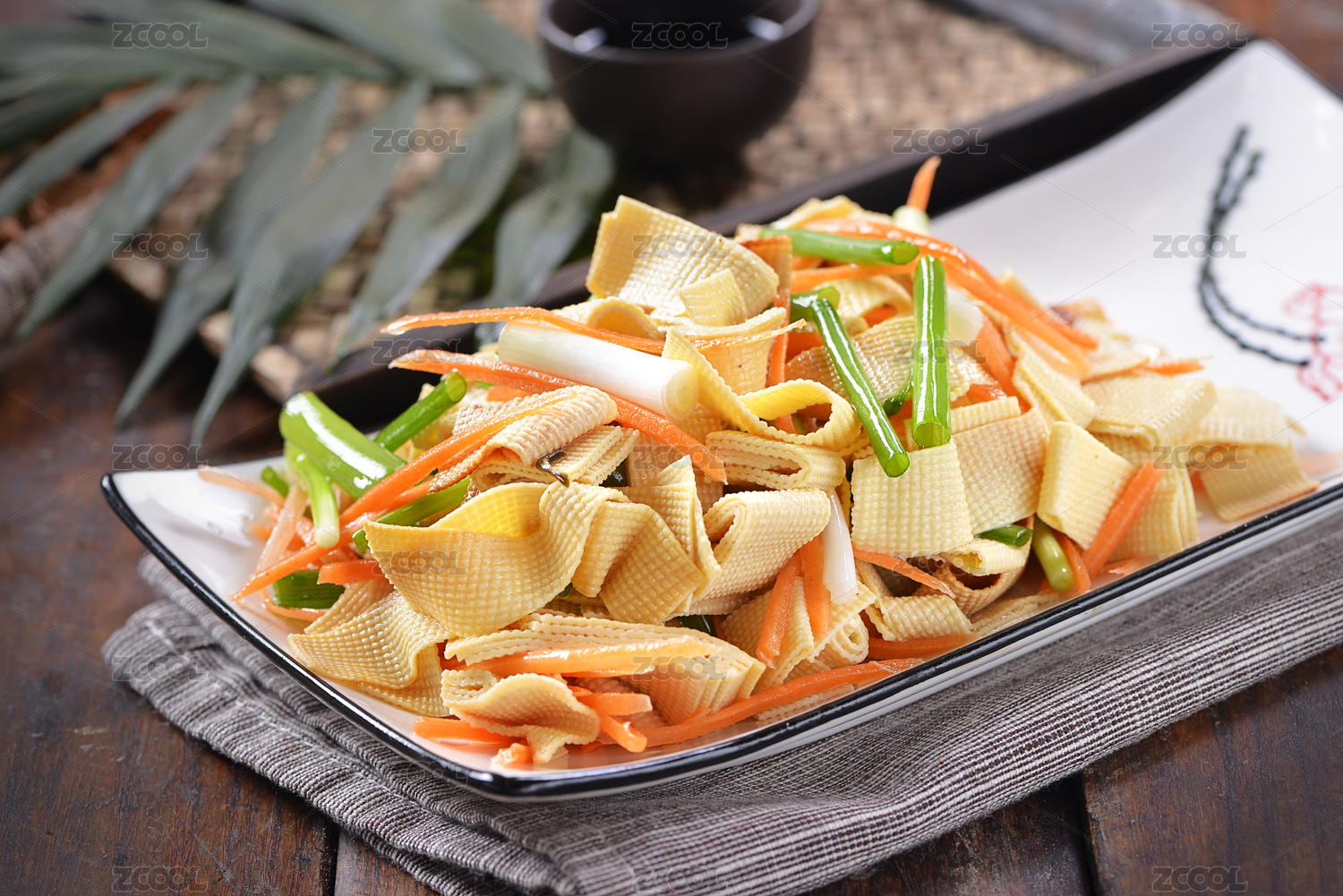 餐盤里的鹵干豆腐卷