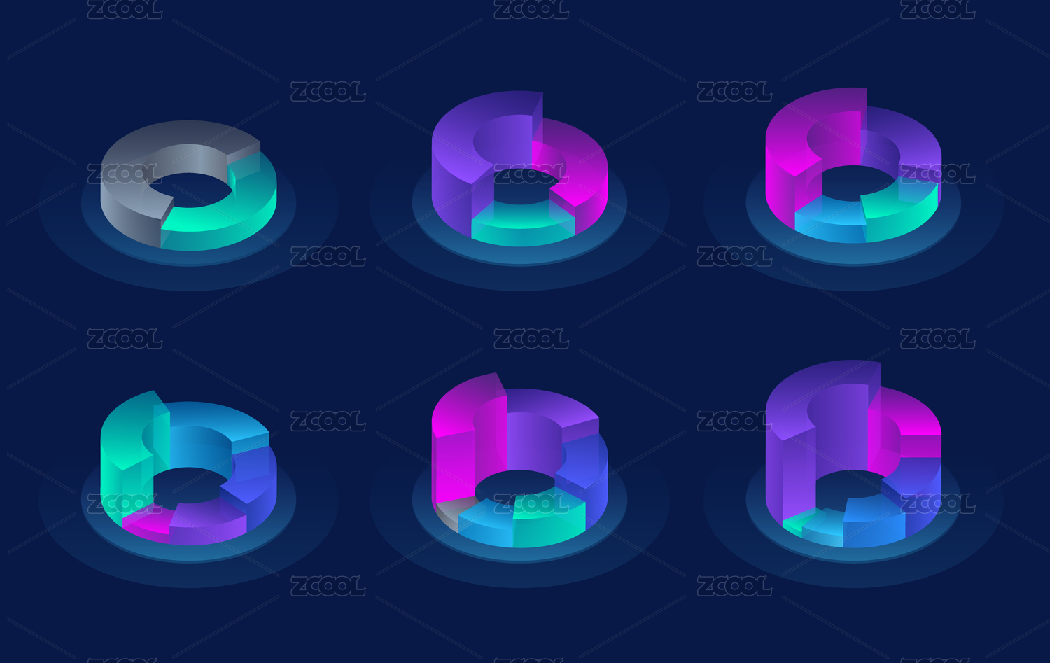 立體彩色餅狀圖在深色大屏上可視化元素素材