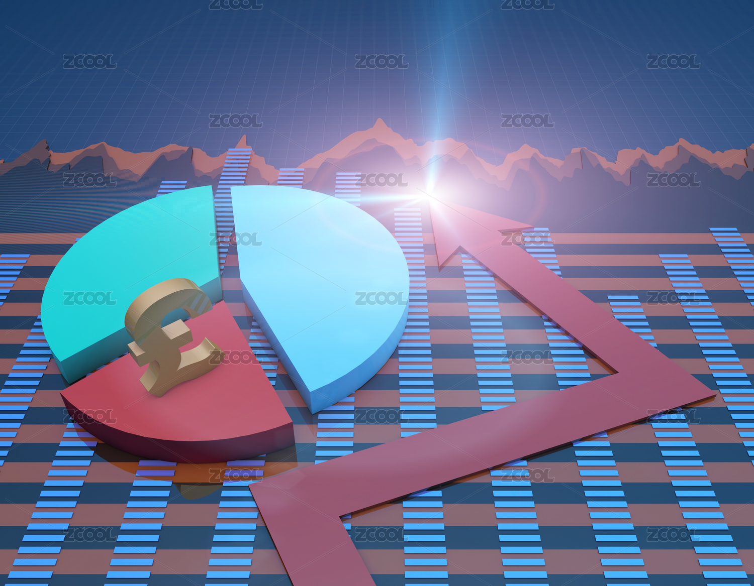 經濟發(fā)展箭頭與餅狀圖,利潤分成,經濟統(tǒng)計