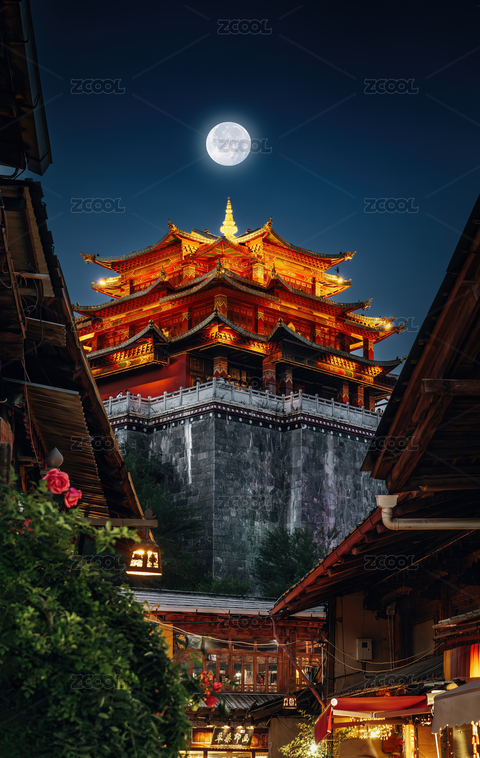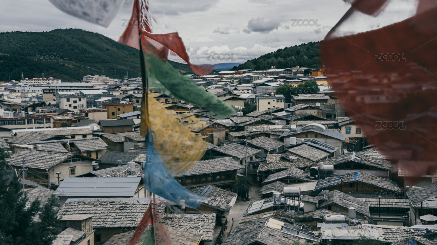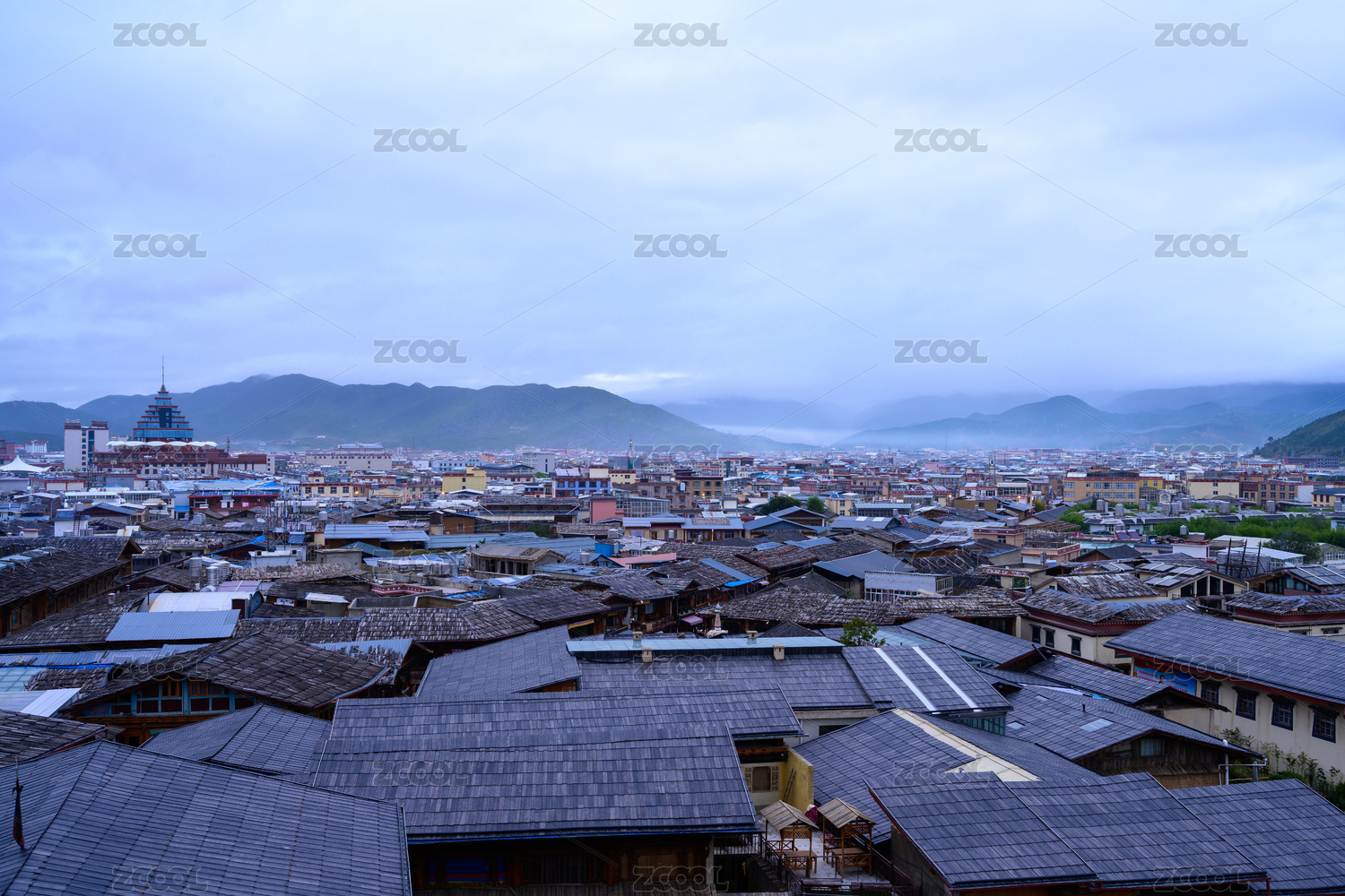 云南省香格里拉獨(dú)克宗月光古城天際線