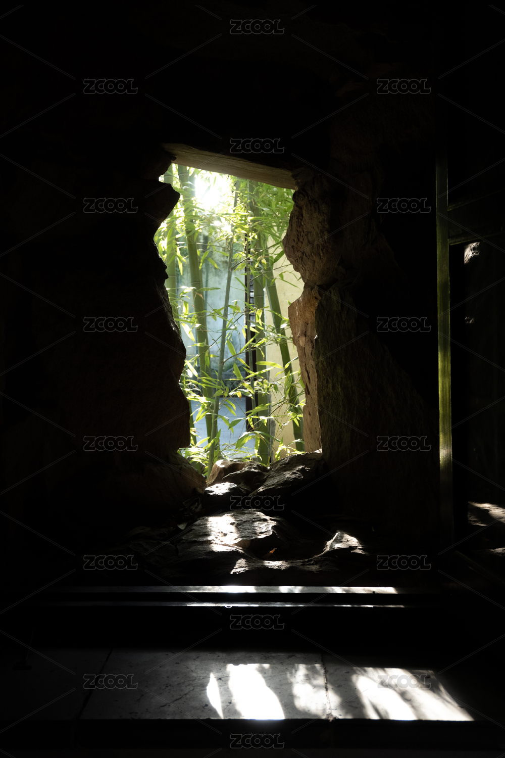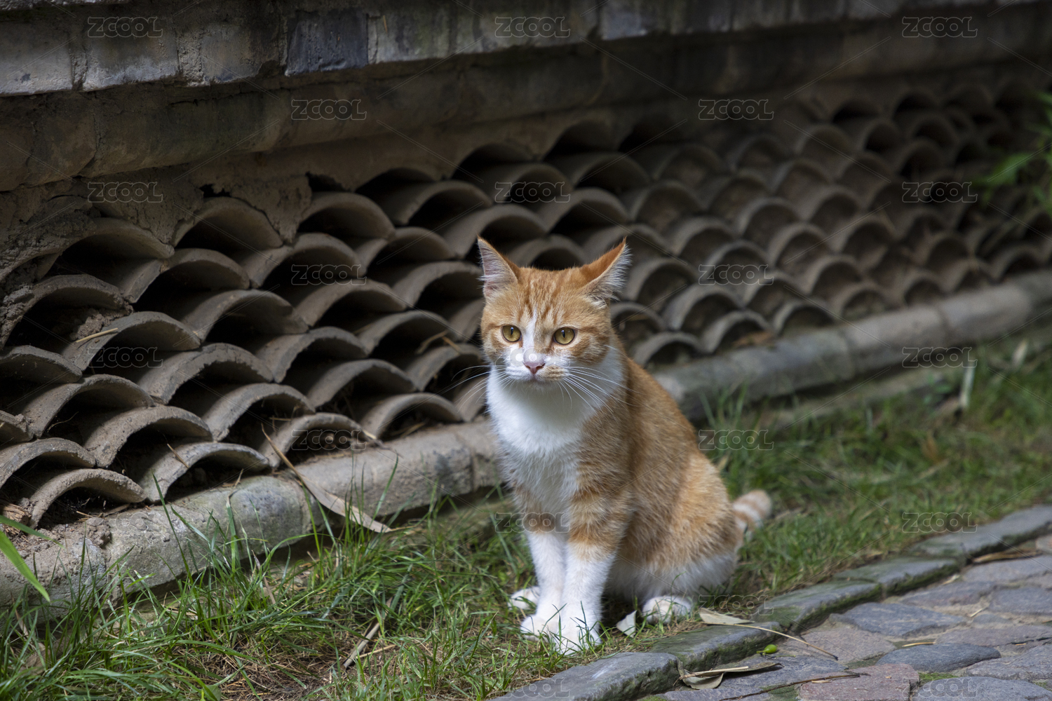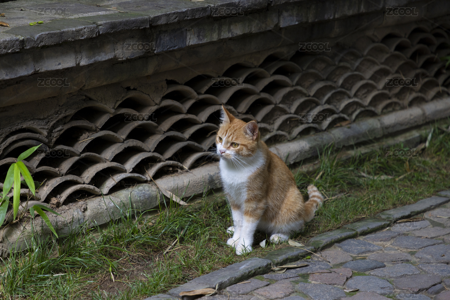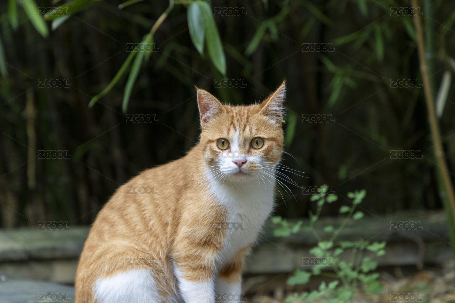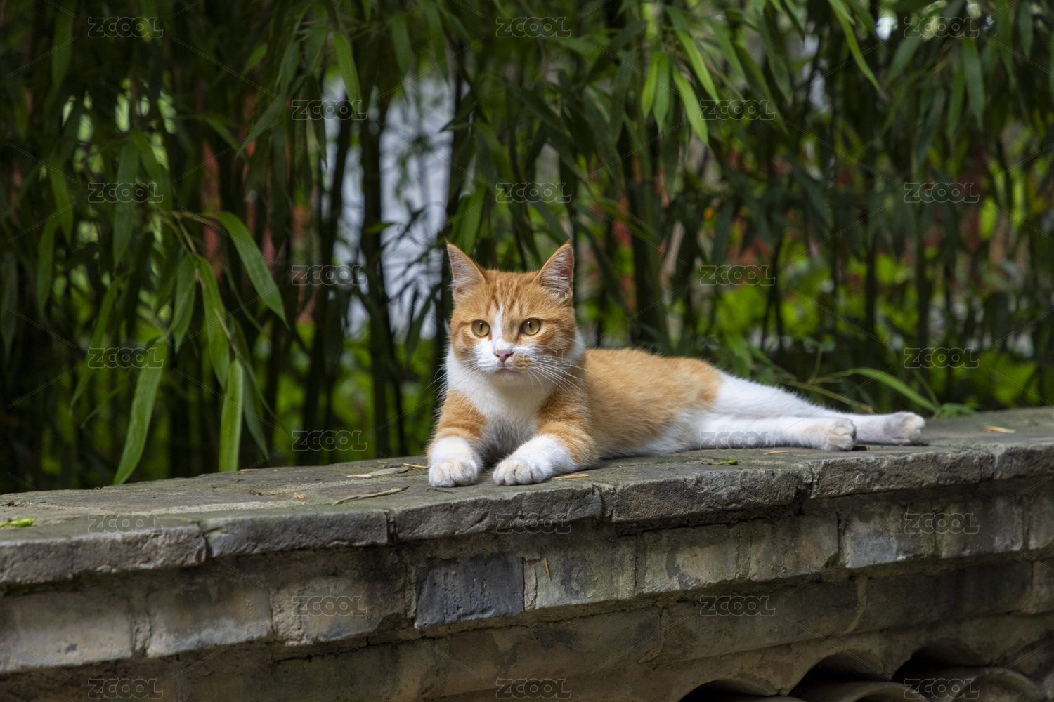 中式園林竹林庭院里家貓橘白貓