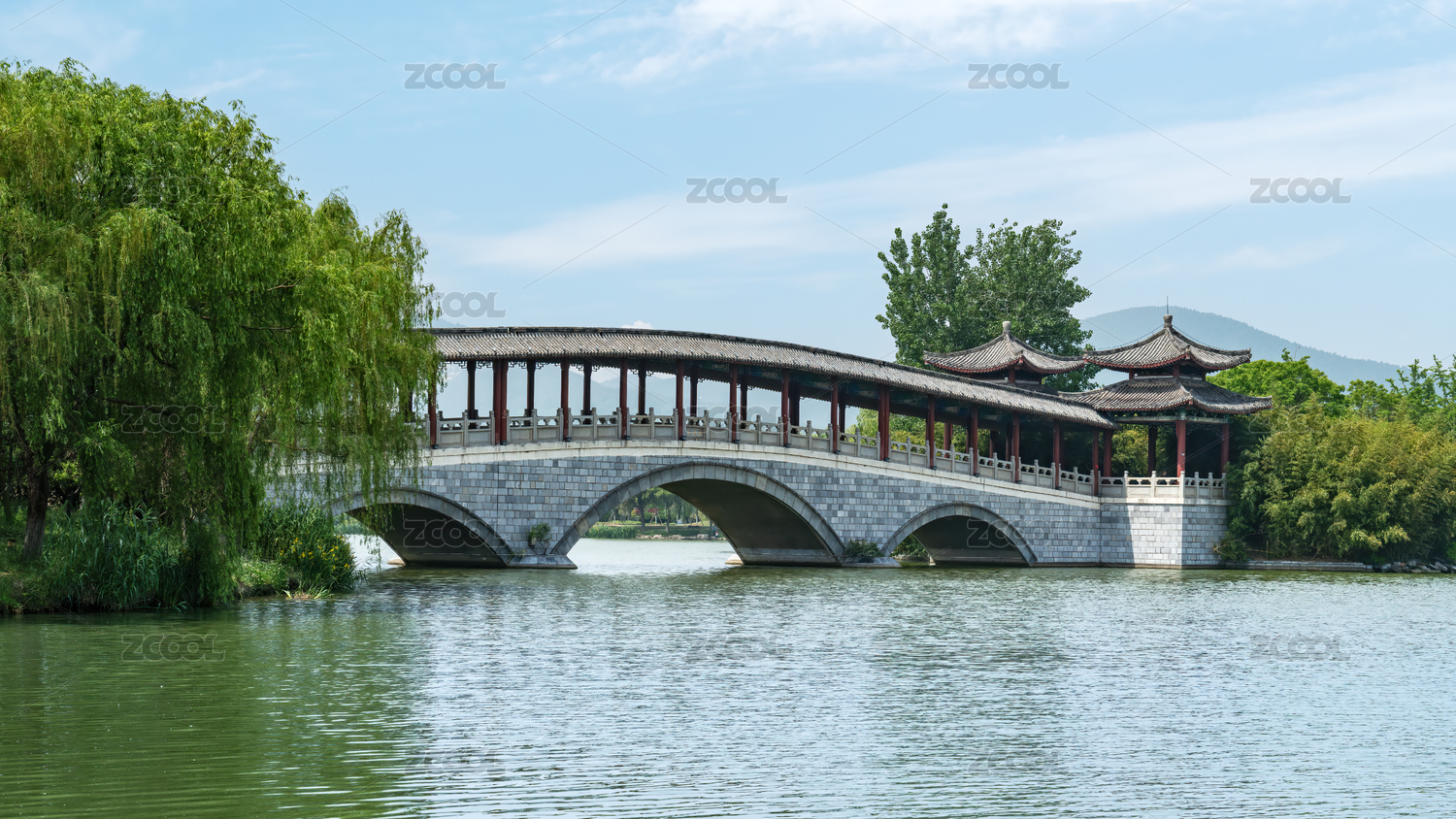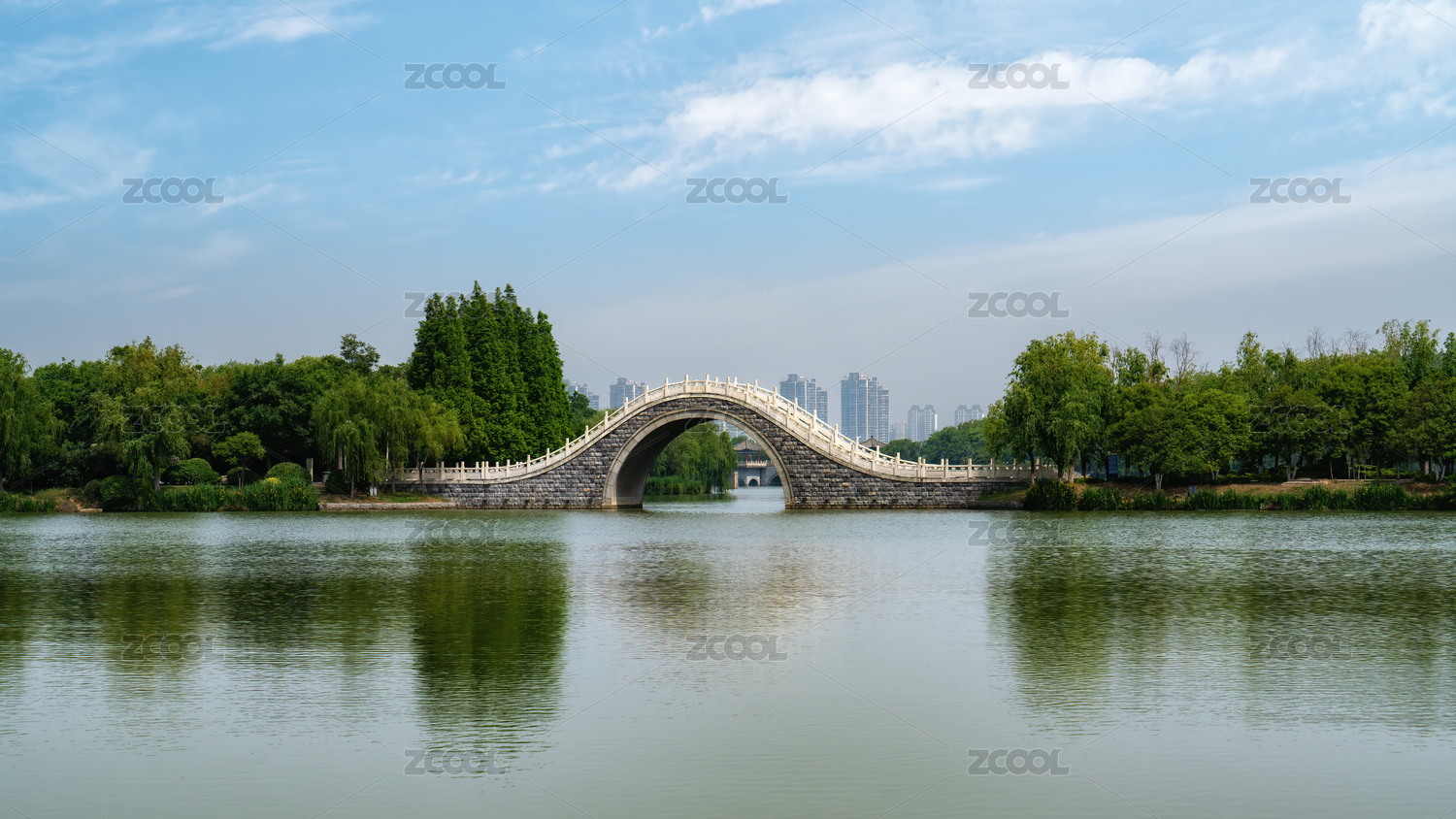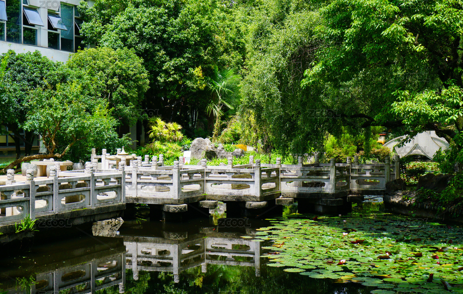 中式園林石橋池塘景觀