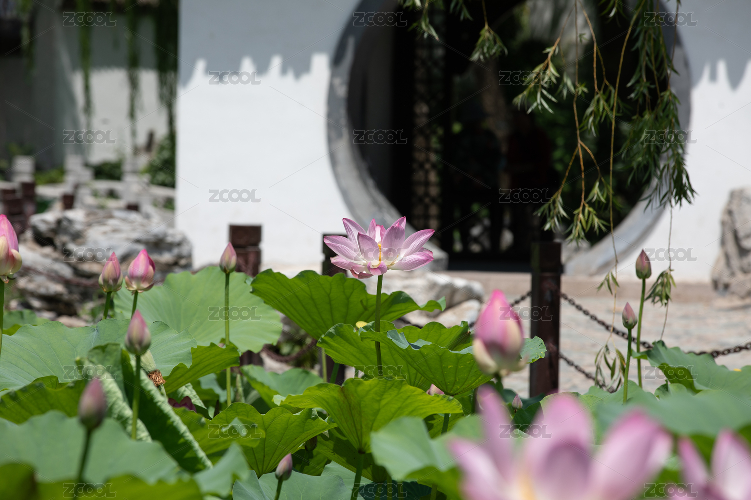 中式園林中的荷花