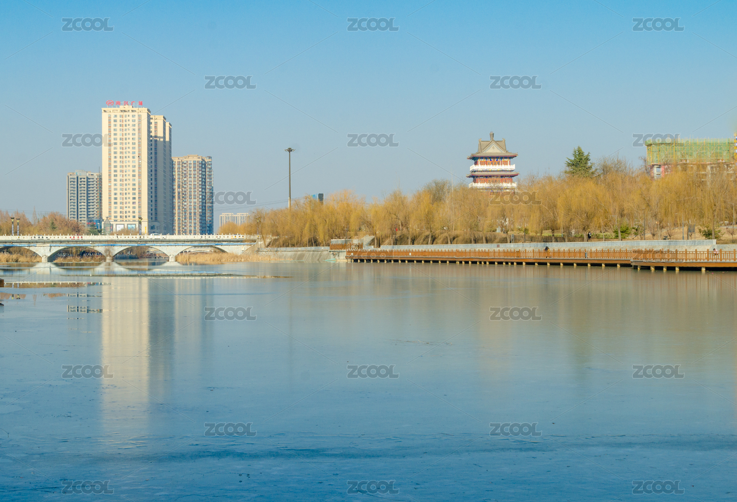 陜西省渭南市臨渭區(qū)冰封的湭河風(fēng)光