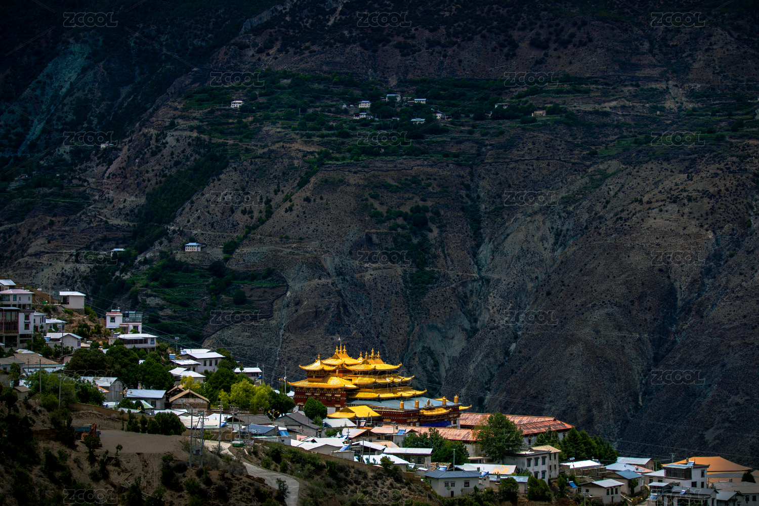 中國(guó)云南香格里拉.大山里的寺院