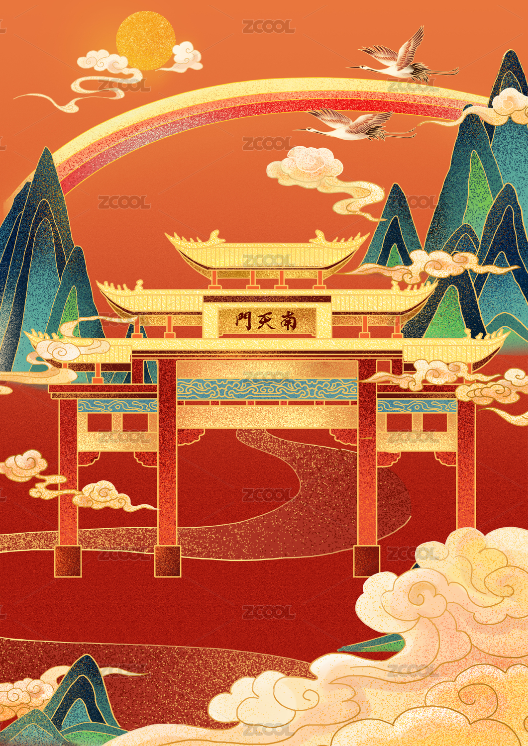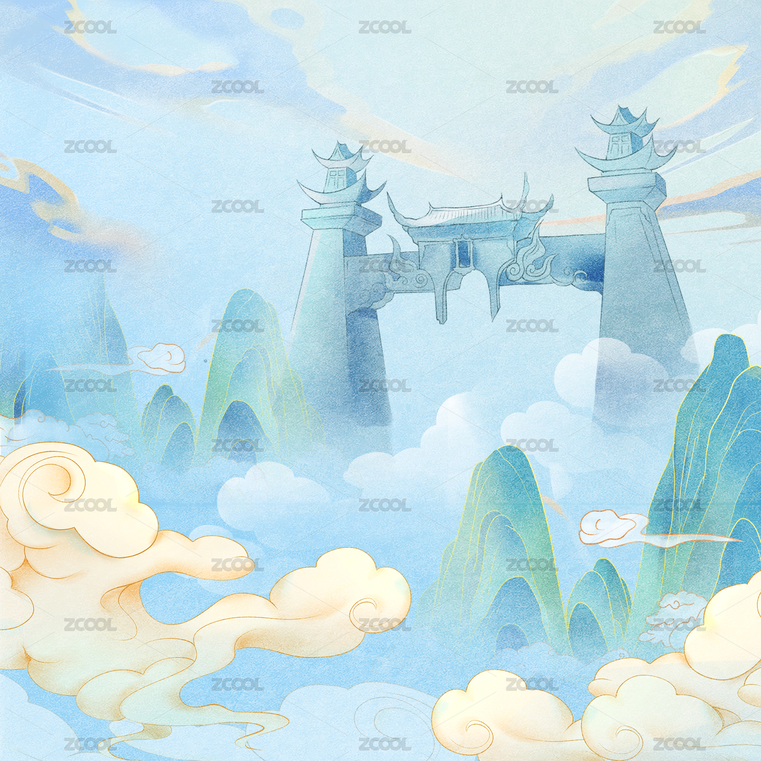手繪國(guó)風(fēng)南天門