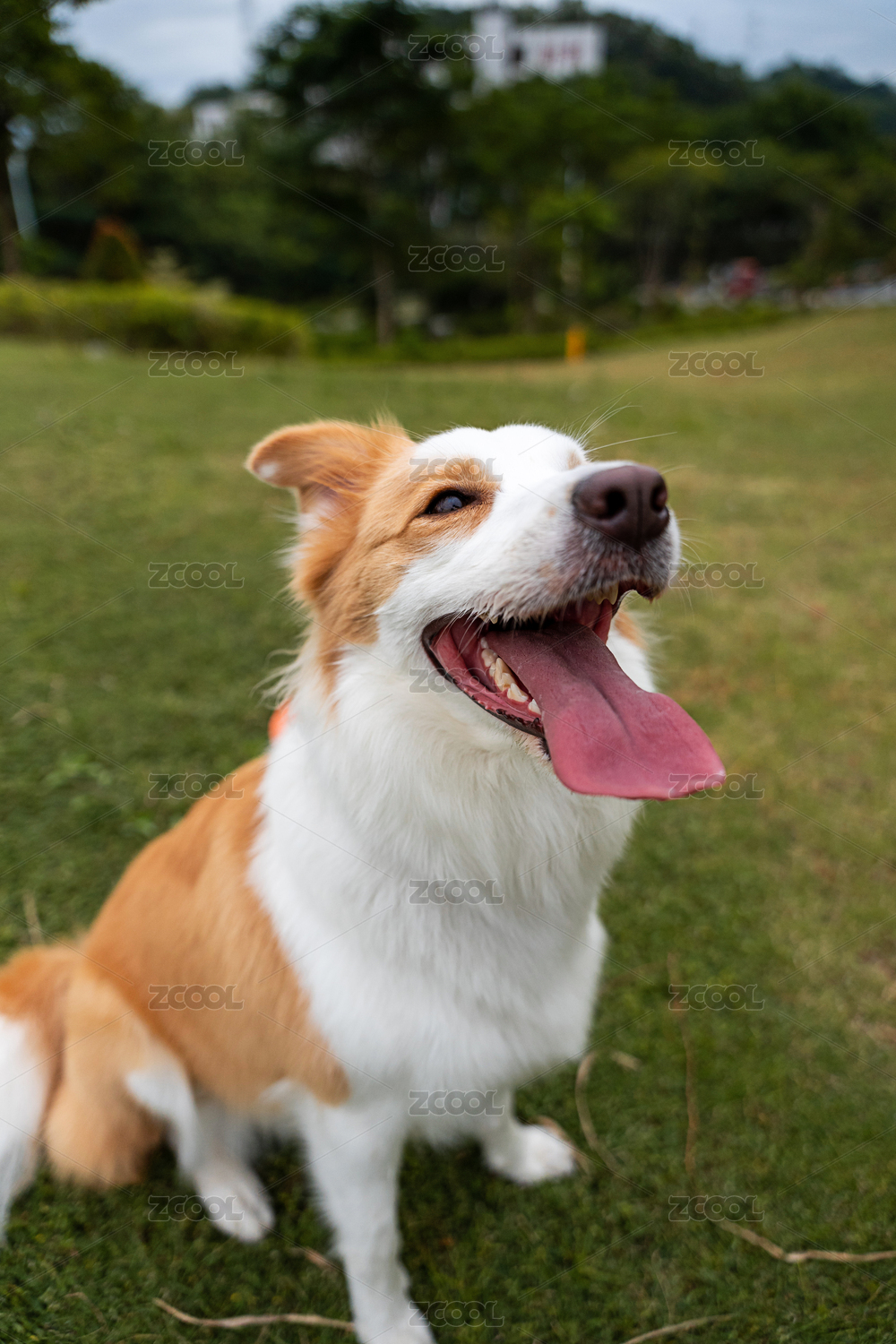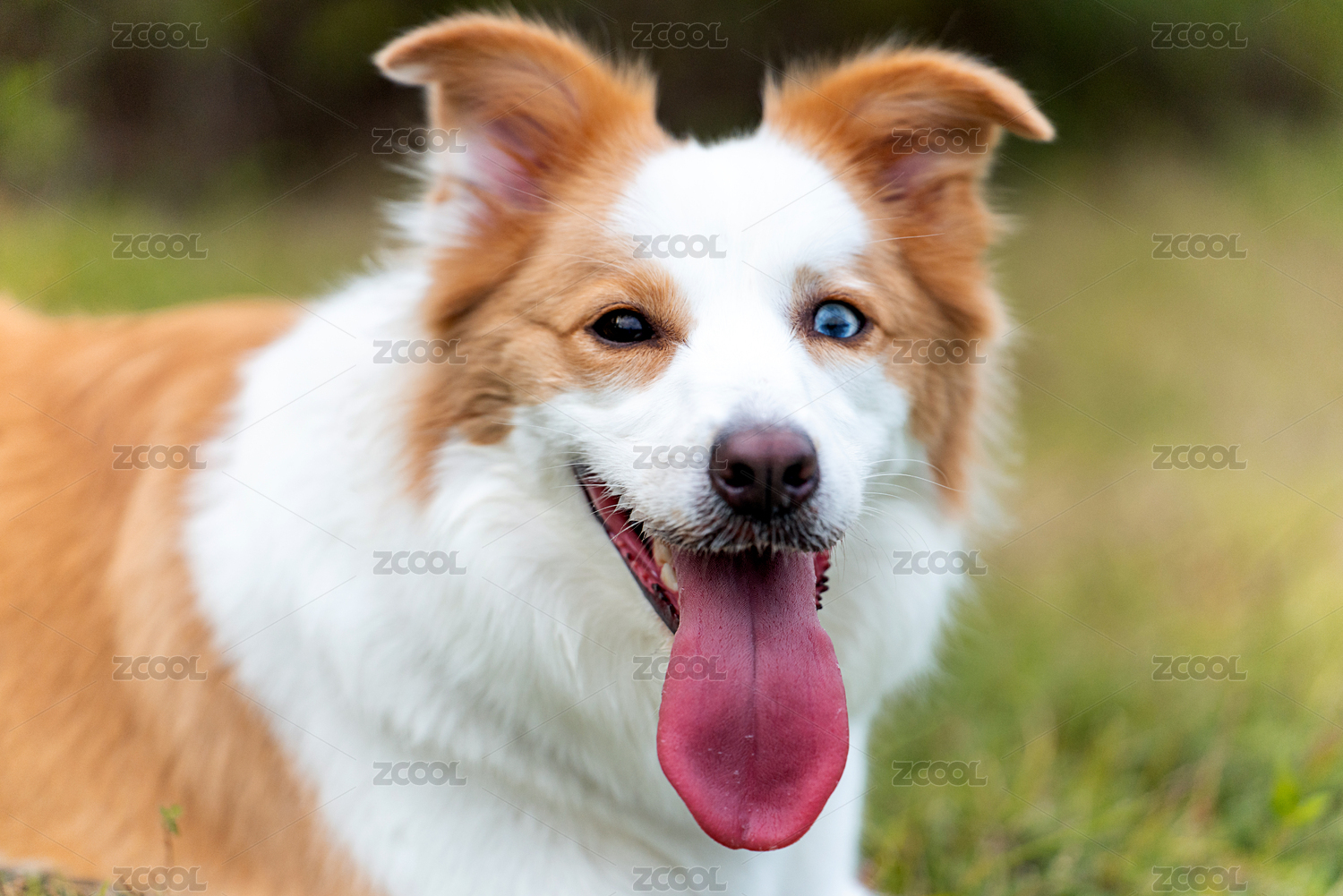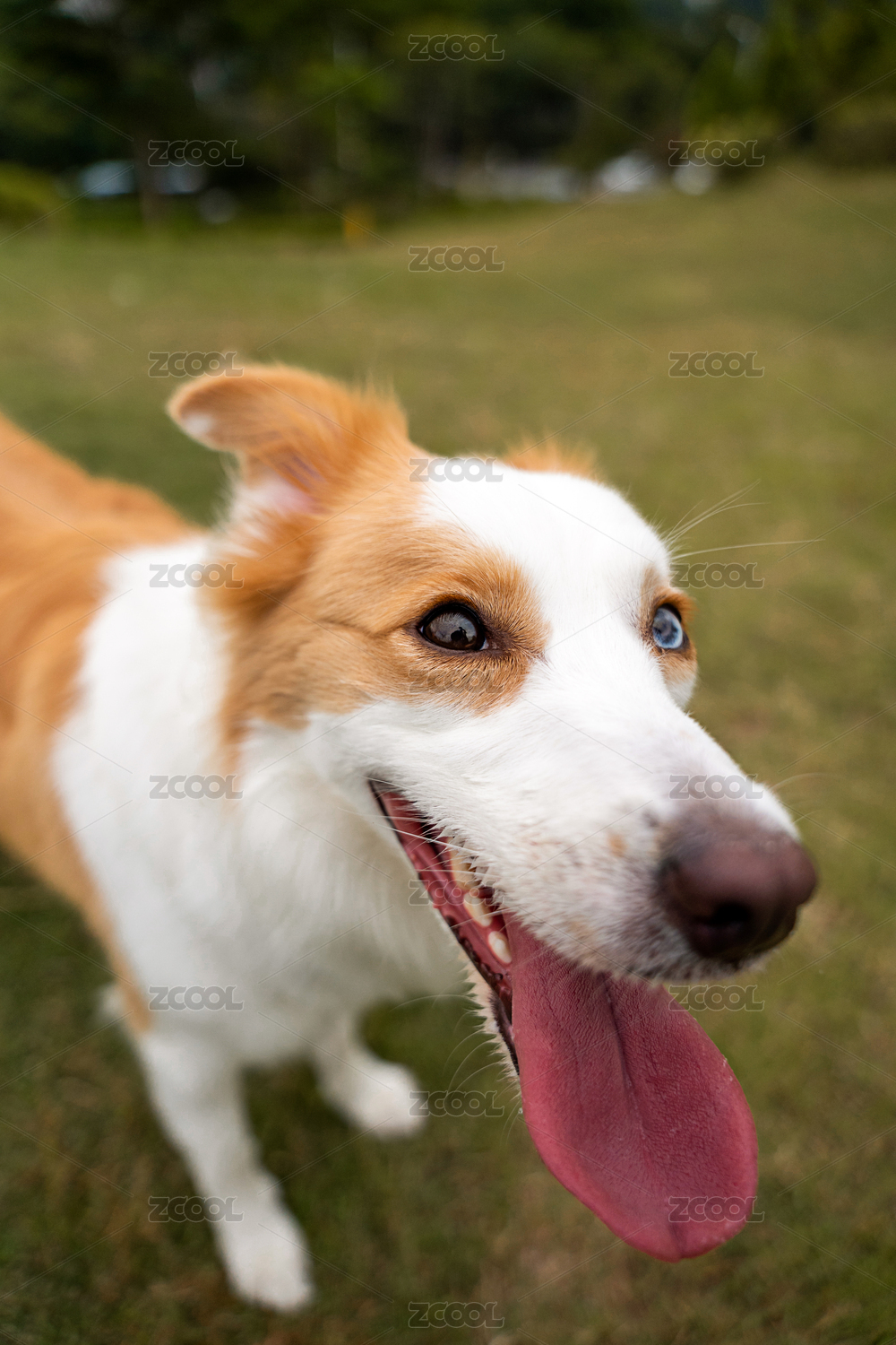 廣角鏡頭下開(kāi)心的望向鏡頭的異瞳邊牧犬