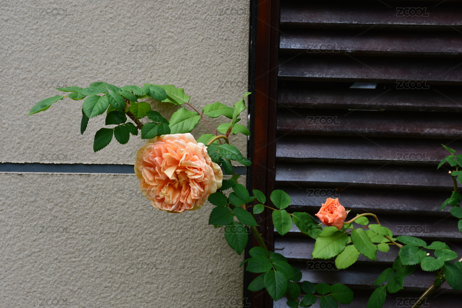 圍墻和窗欞與黃月季