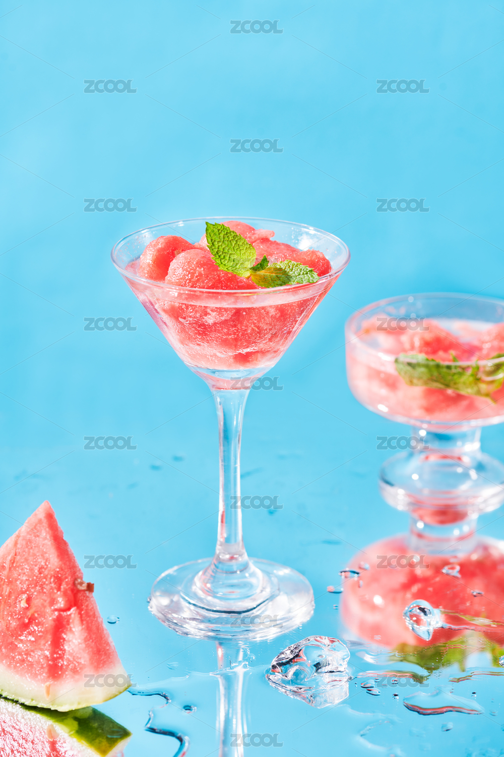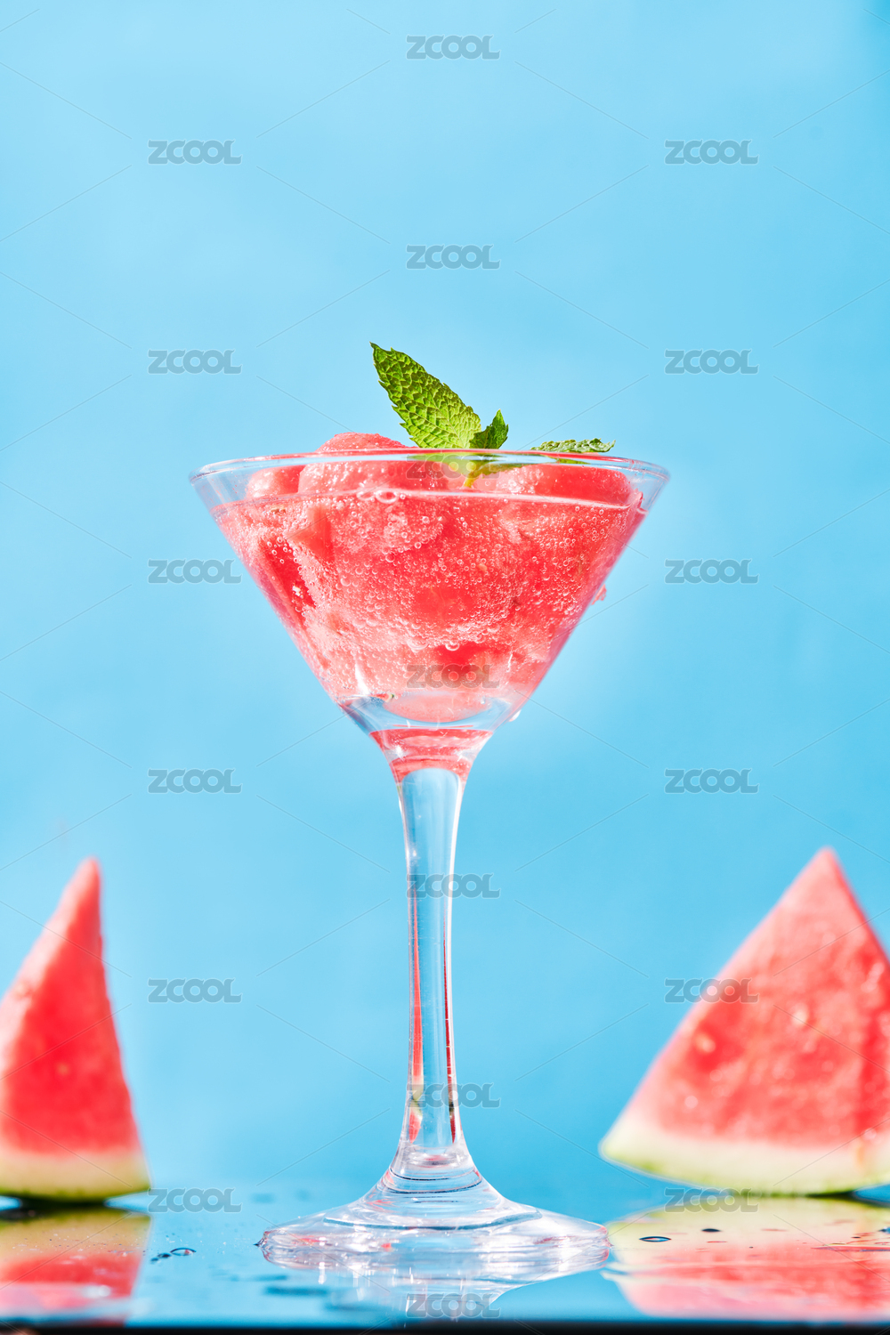 藍(lán)色背景下的西瓜汁特寫(xiě)鏡頭