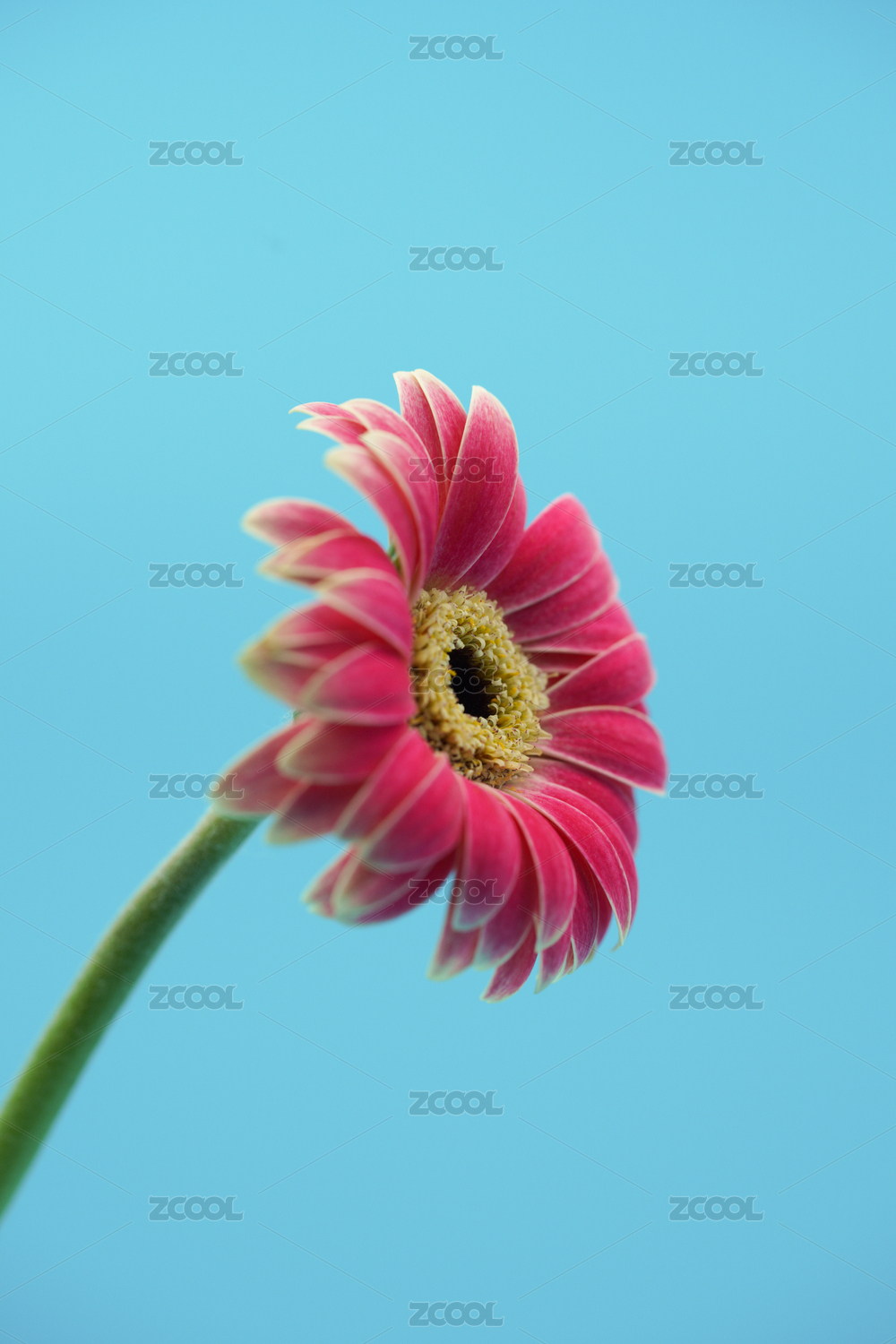 藍(lán)色背景下的紅色非洲菊花