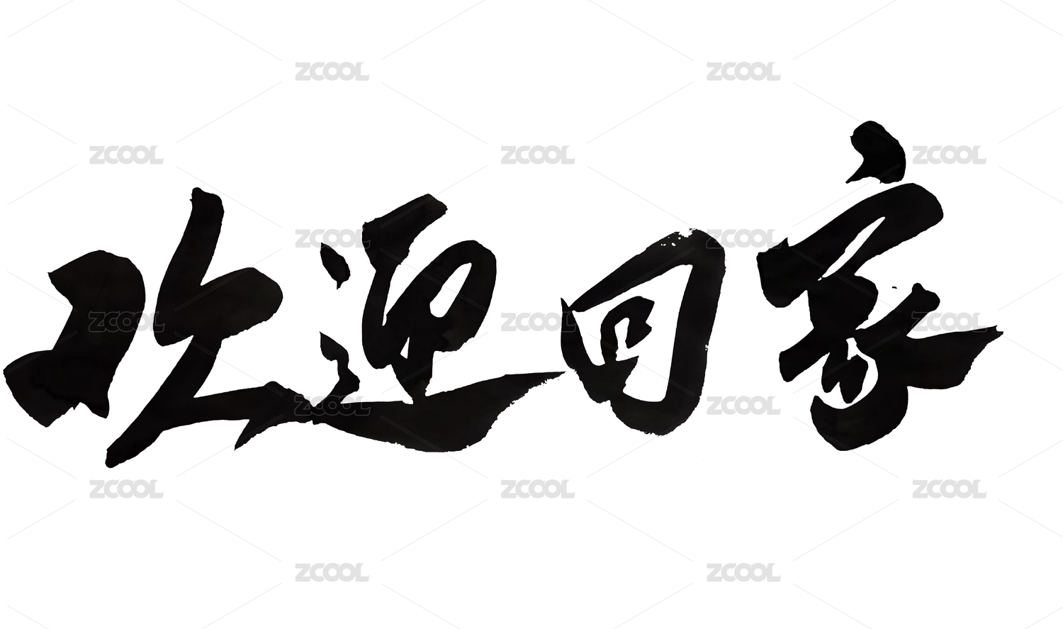 中國風(fēng)書法手寫毛筆字體歡迎回家