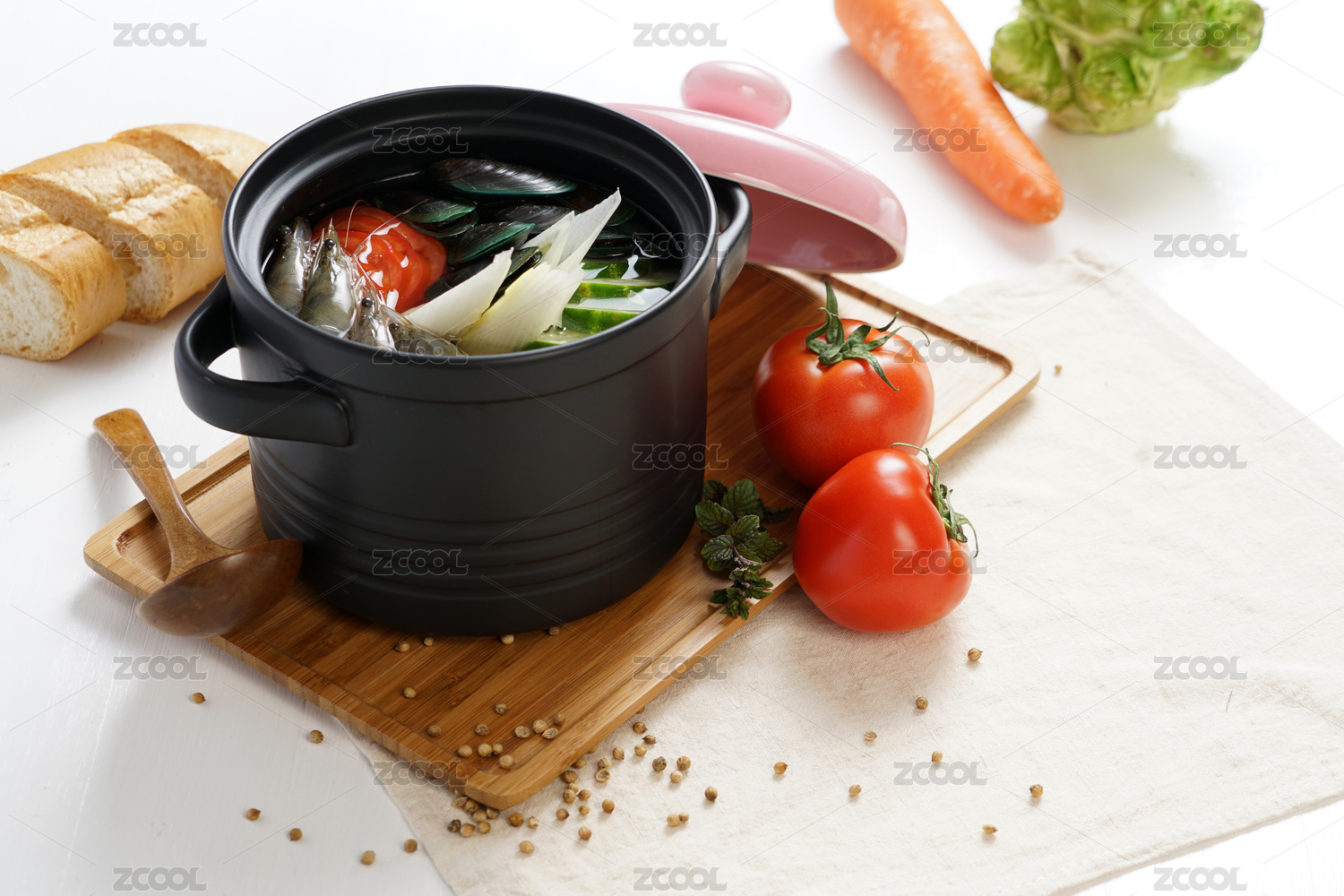 日式海鮮壽喜鍋食材放在白色陶瓷鍋內(nèi)