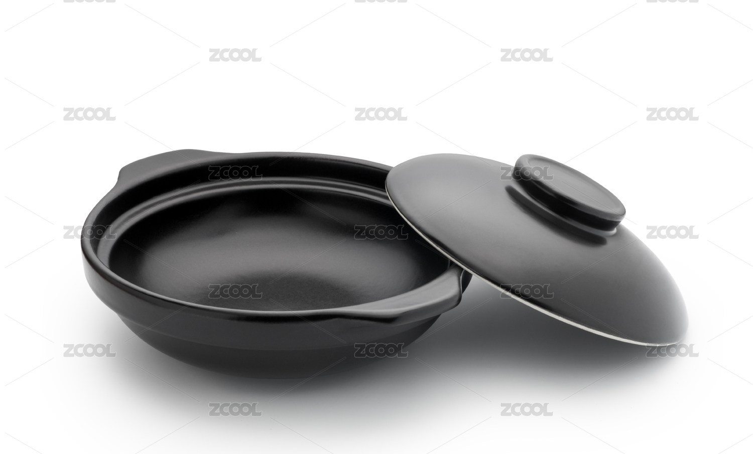 灰色背景上一個白色陶瓷鍋里的姜辣砂鍋雞