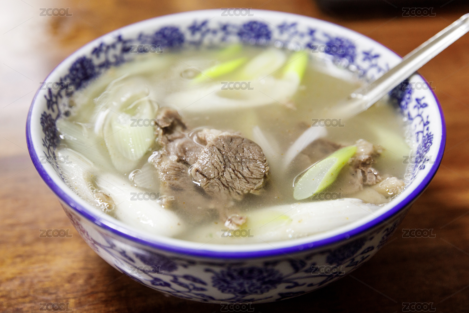 托盤(pán)上正倒入熱湯的白碗里清湯羊肉粉米粉