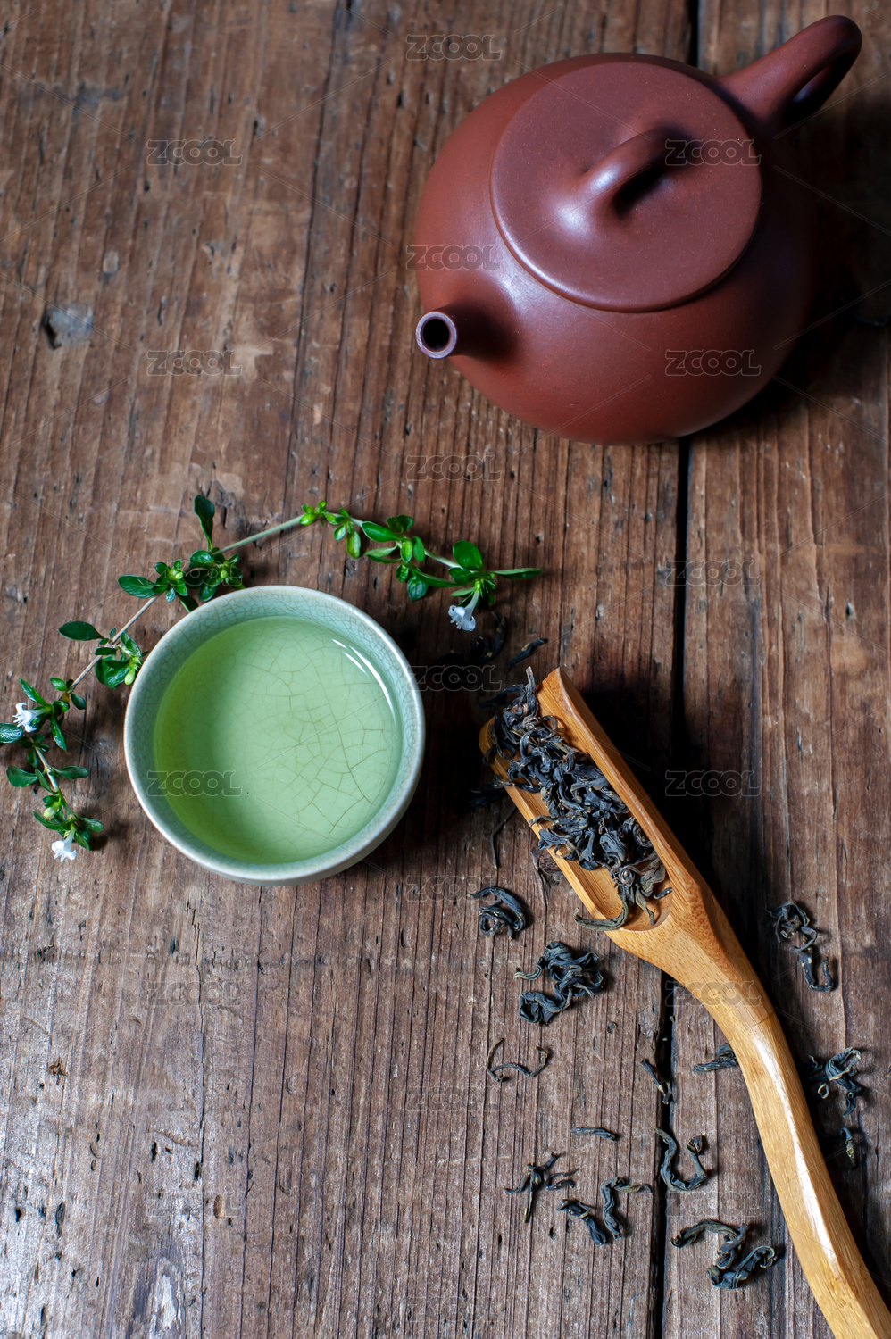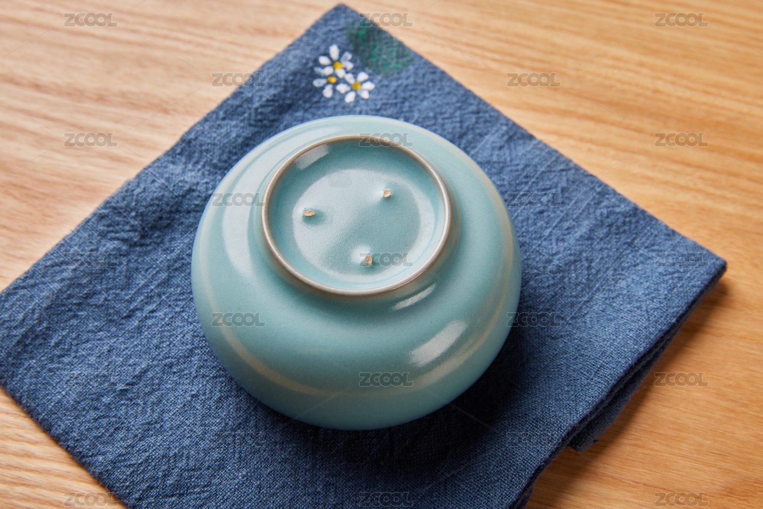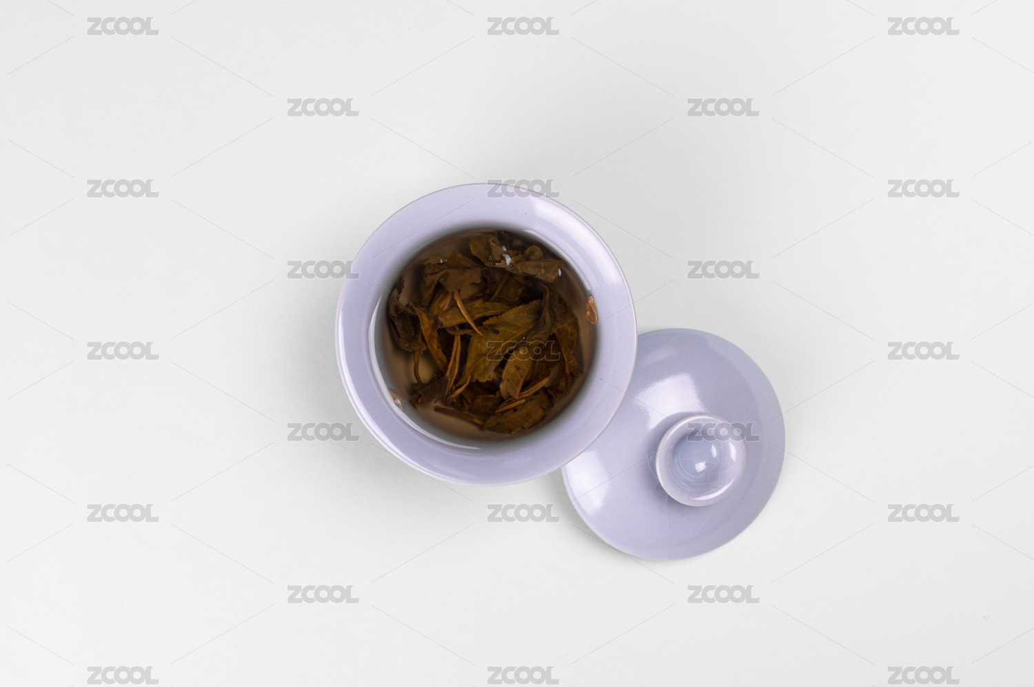 淺色背景上中國傳統(tǒng)汝窯泡著茉莉花茶