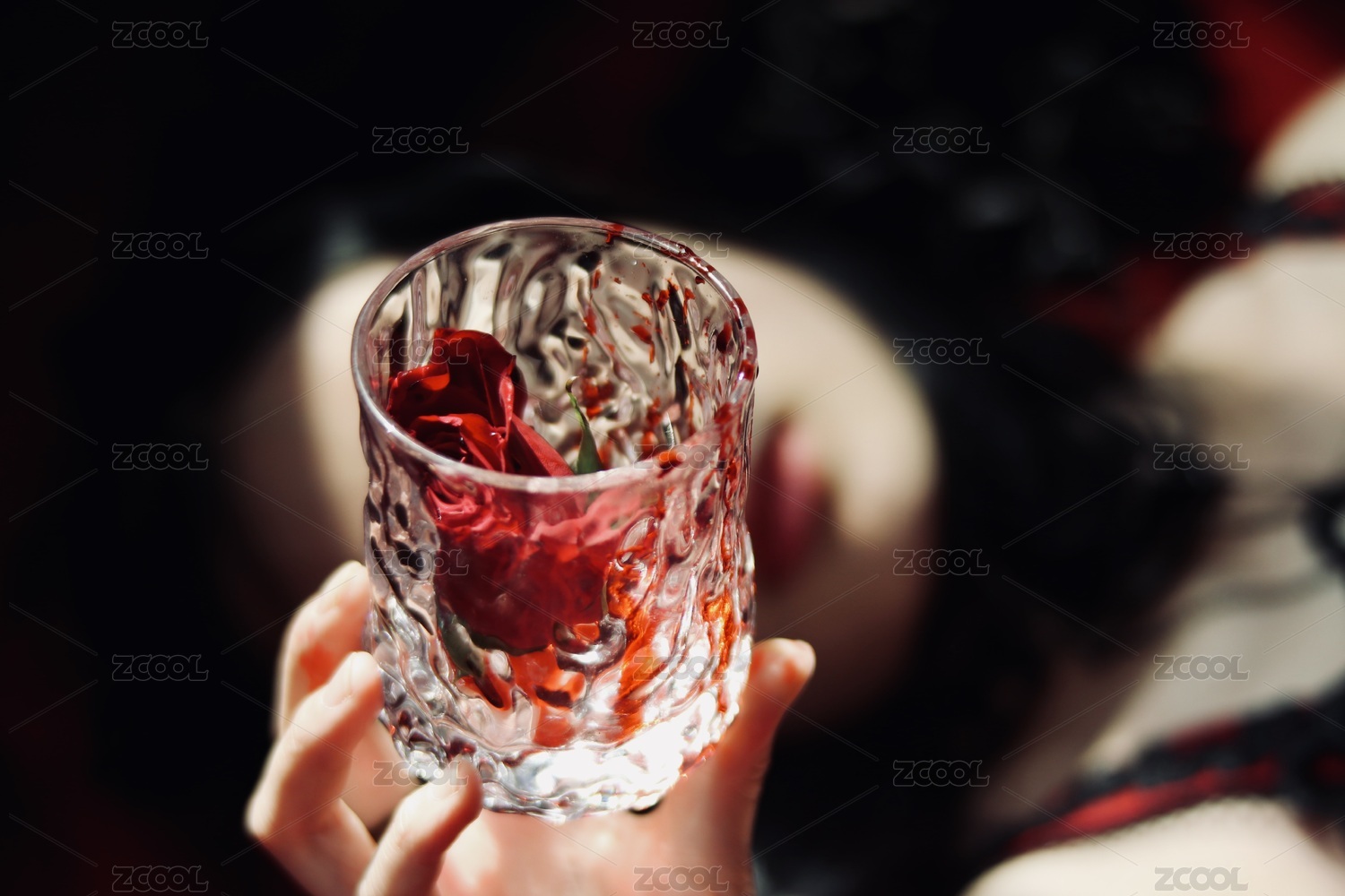 哥特風(fēng)格玻璃杯中的血紅玫瑰