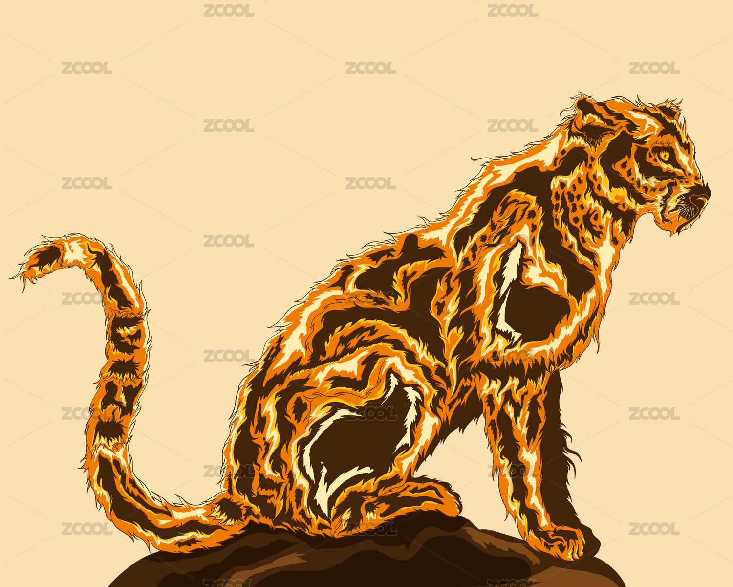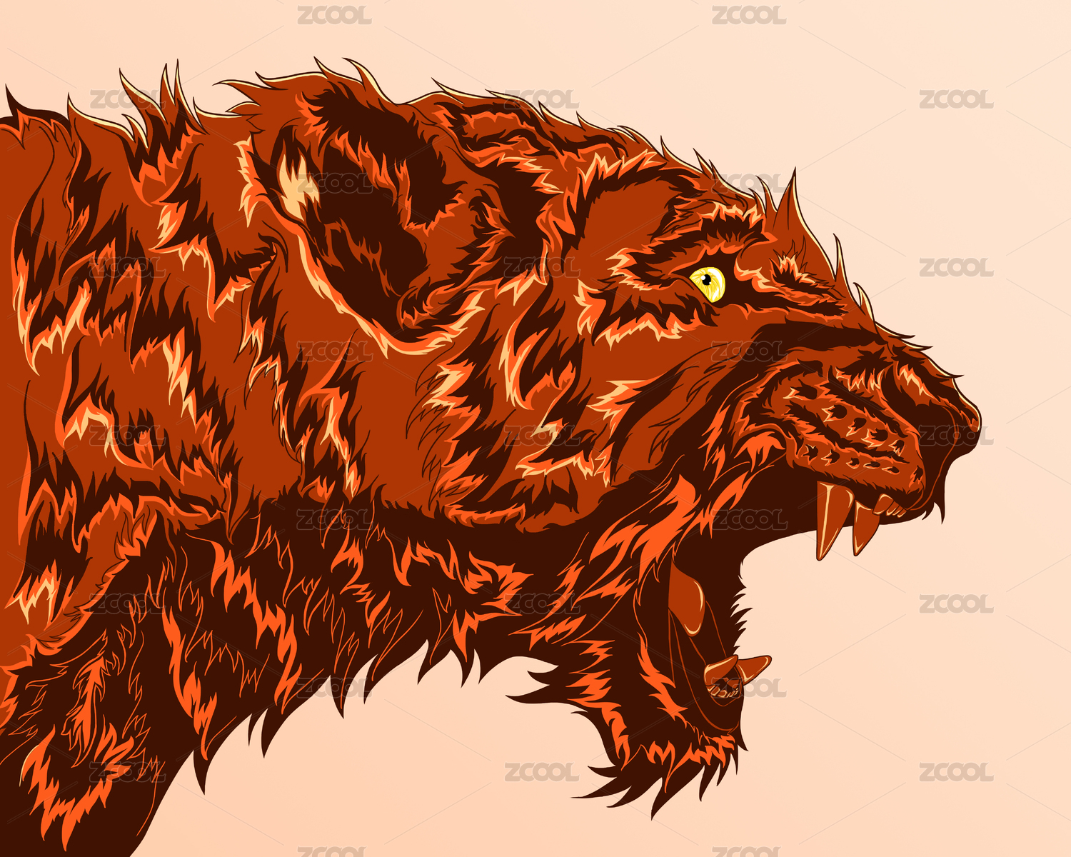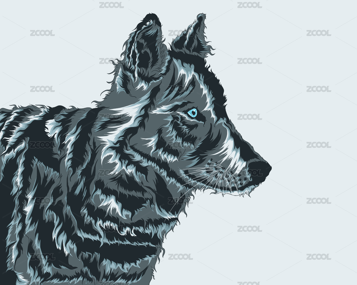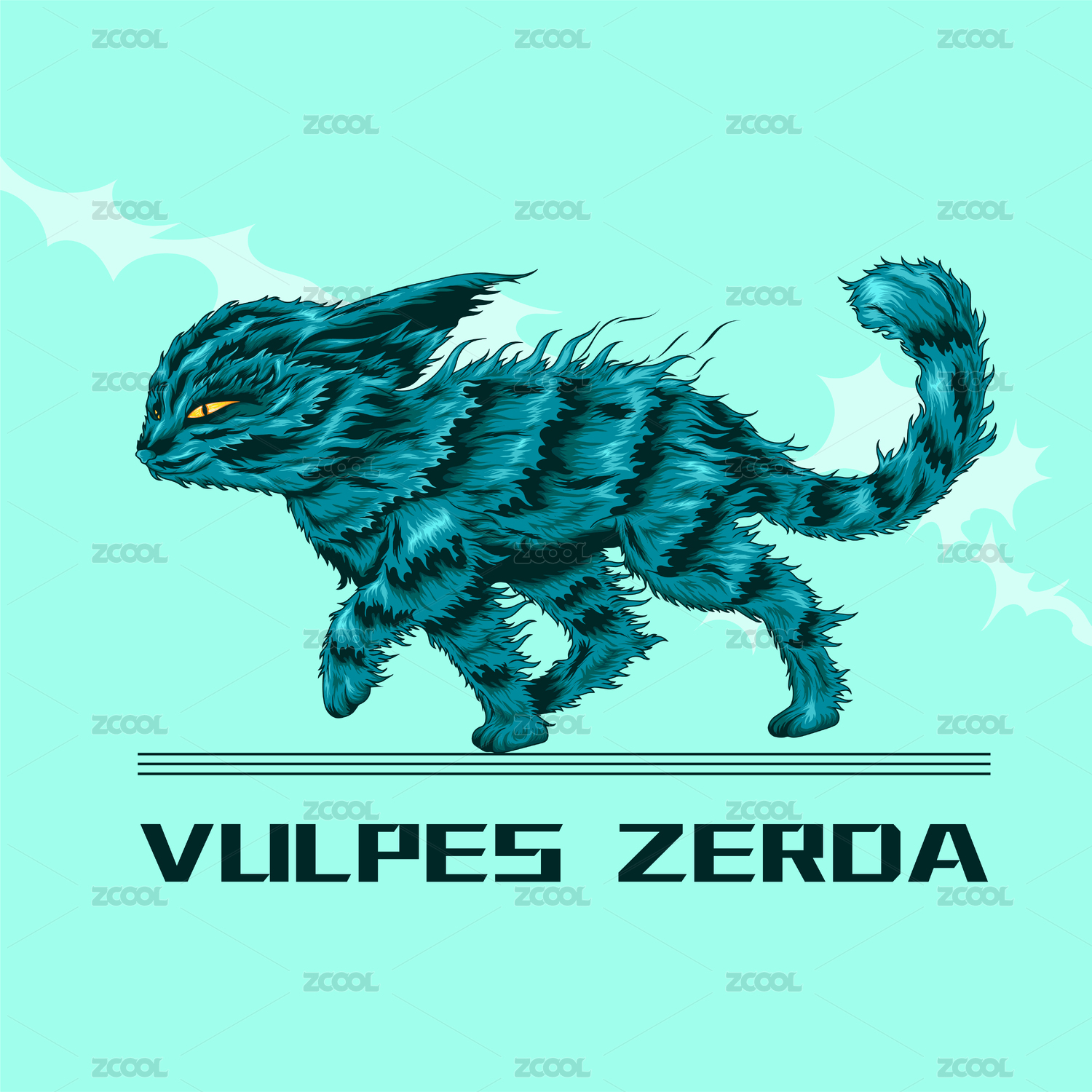 正在奔跑的闊耳狐暗黑風(fēng)格矢量插畫