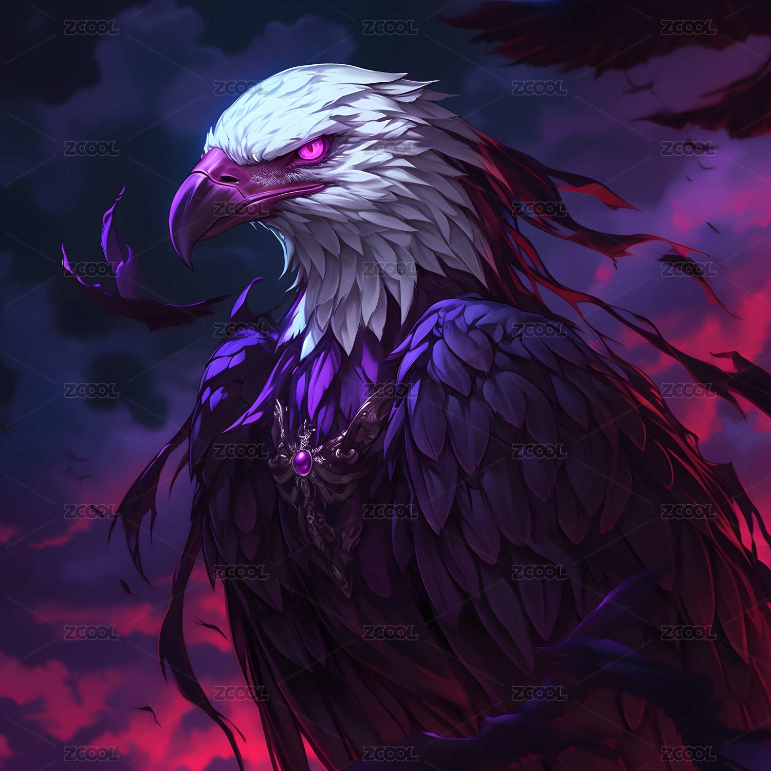 美式暗黑風(fēng)格夜晚的老鷹插畫