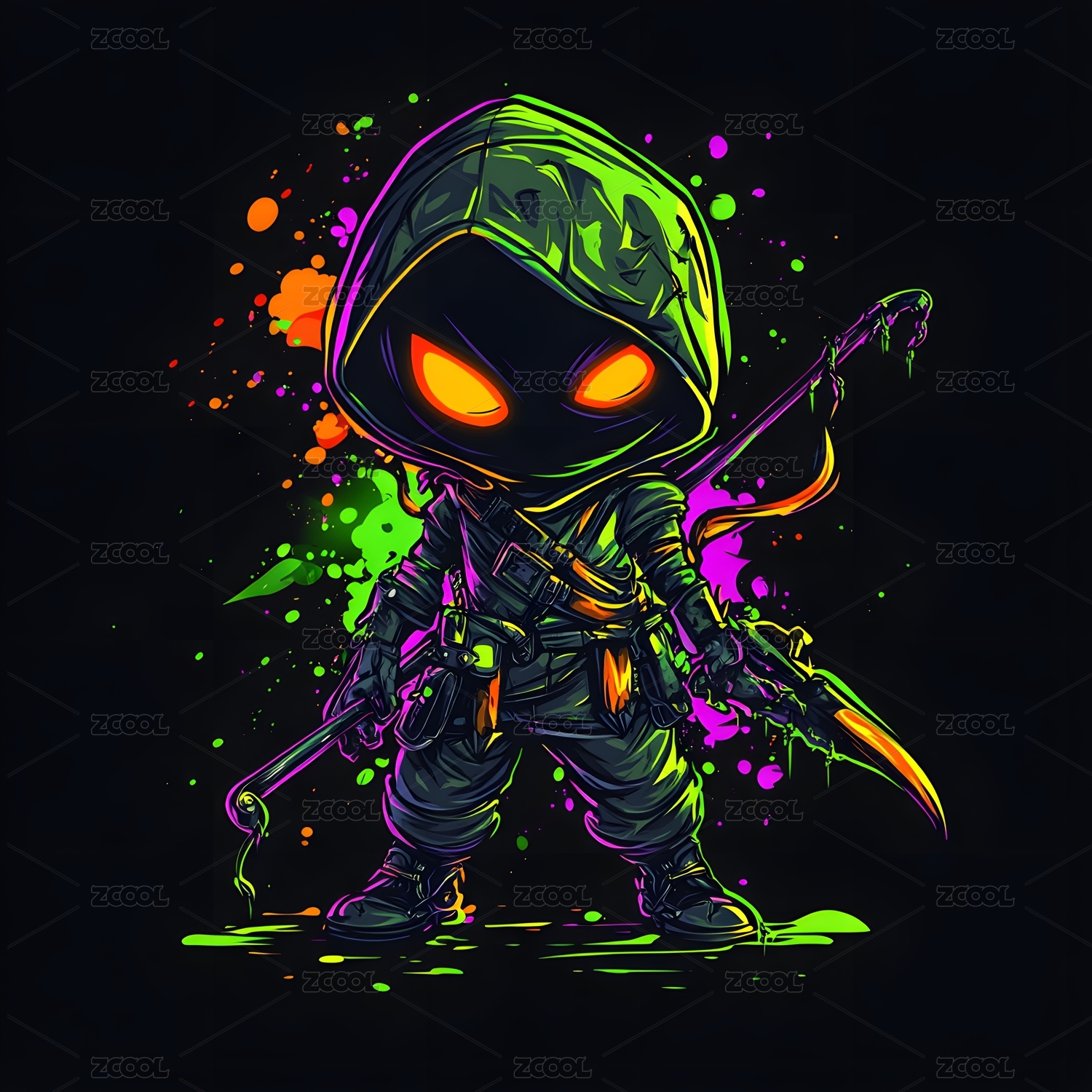 暗黑風(fēng)格夜行黑衣人卡通頭像插畫