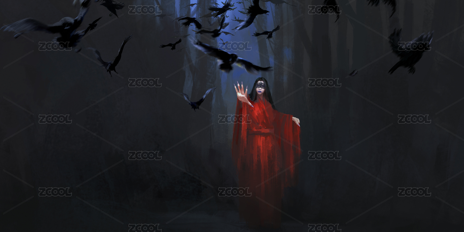 戴面具的女巫師,暗黑風(fēng)格的插圖。