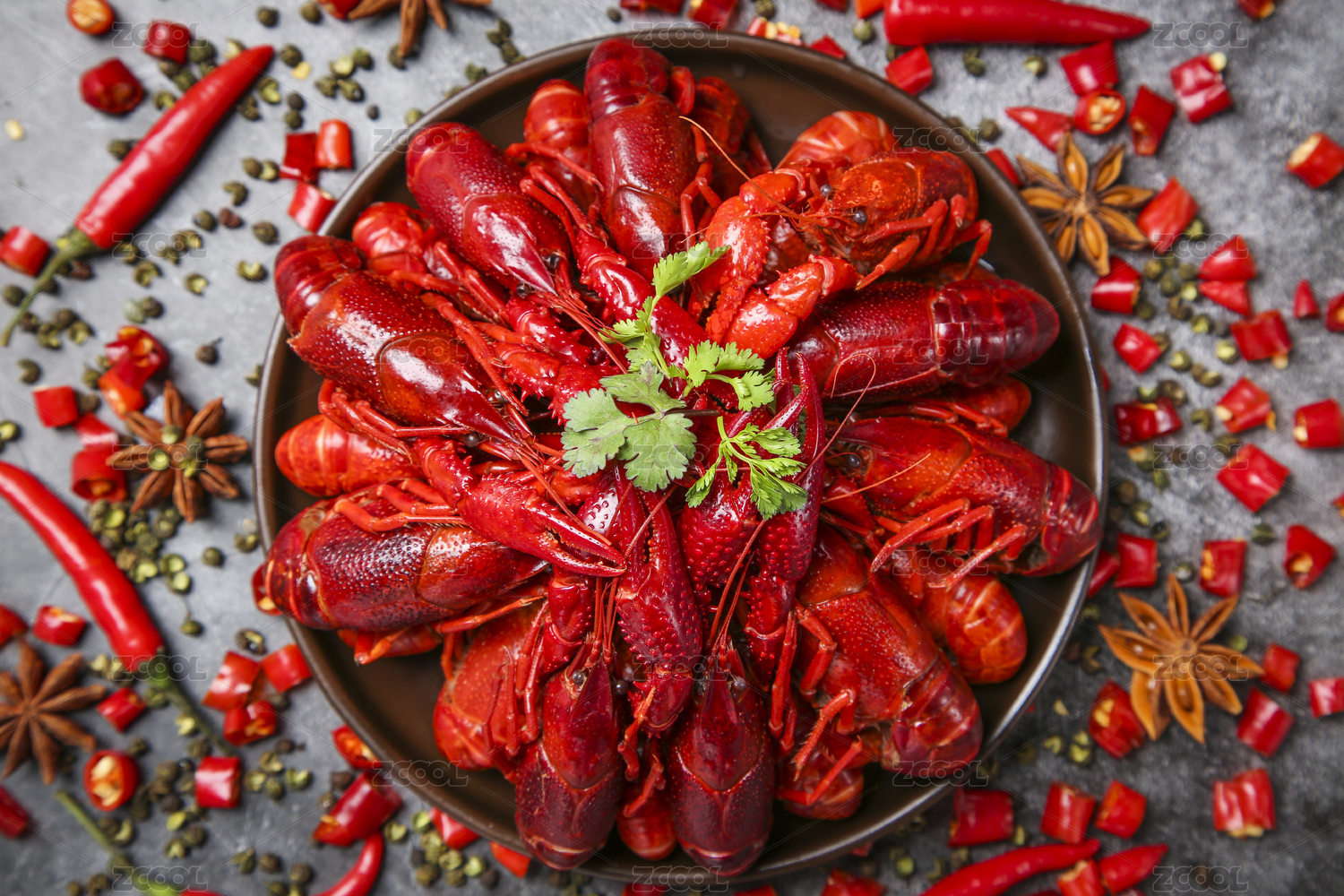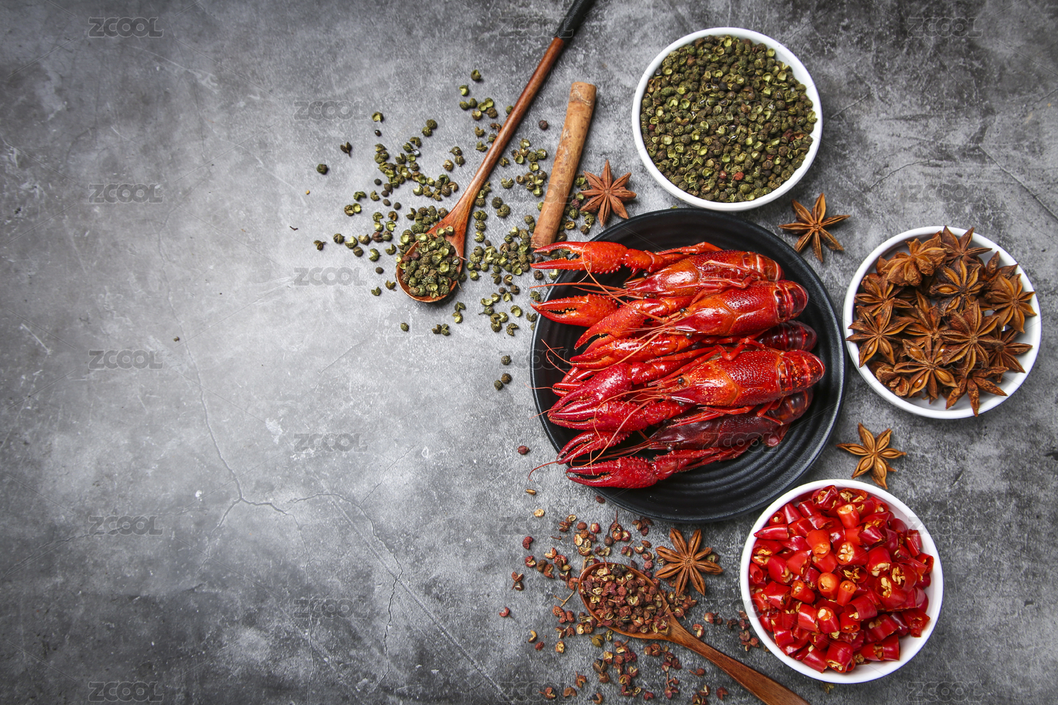 暗黑風(fēng)格的小龍蝦和調(diào)料組合背景