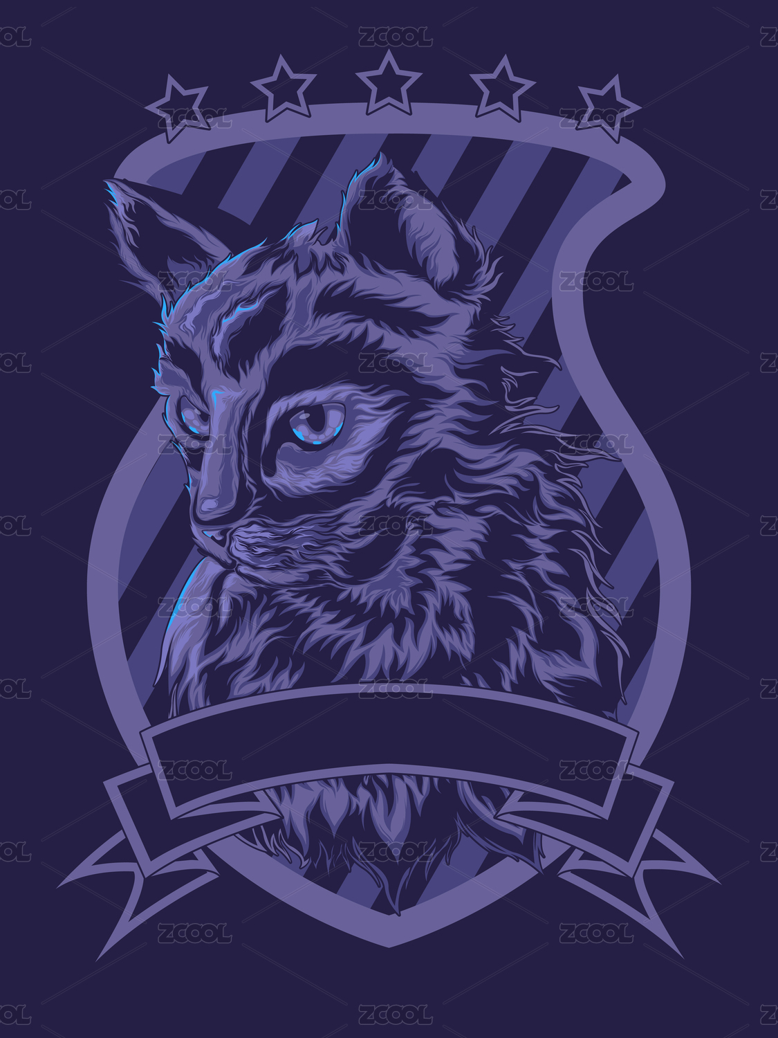 美式暗黑風(fēng)格矢量動物貓盾牌徽章飄帶貼紙