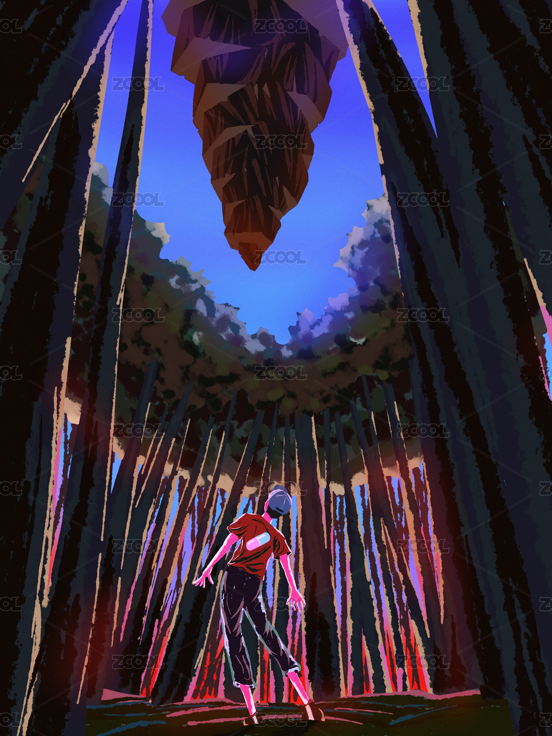 暗黑風(fēng)格水彩色塊與白色線條交錯(cuò)得插圖