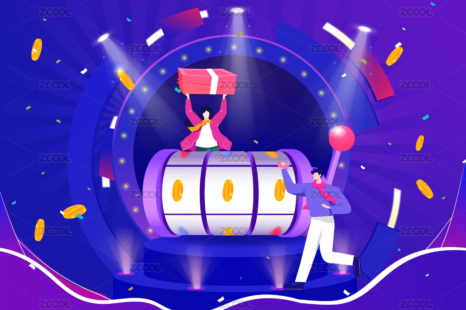 卡通幸運(yùn)抽獎(jiǎng)電商金融活動(dòng)漸變背景矢量插畫
