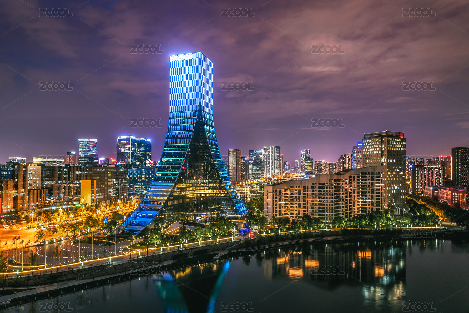 中國四川成都?xì)W洲中心城市建筑夜景