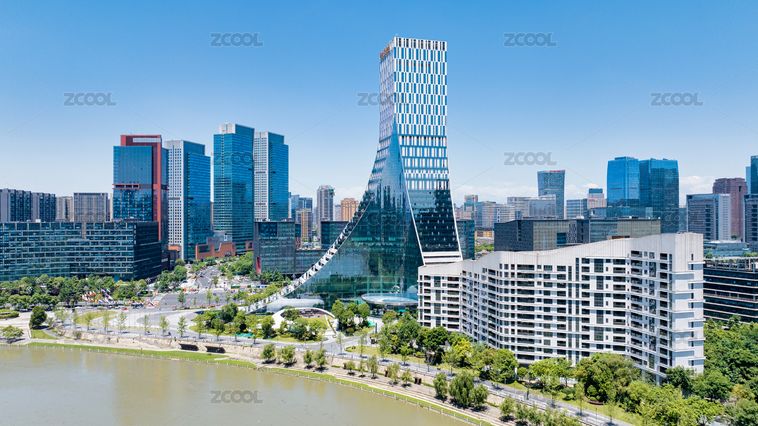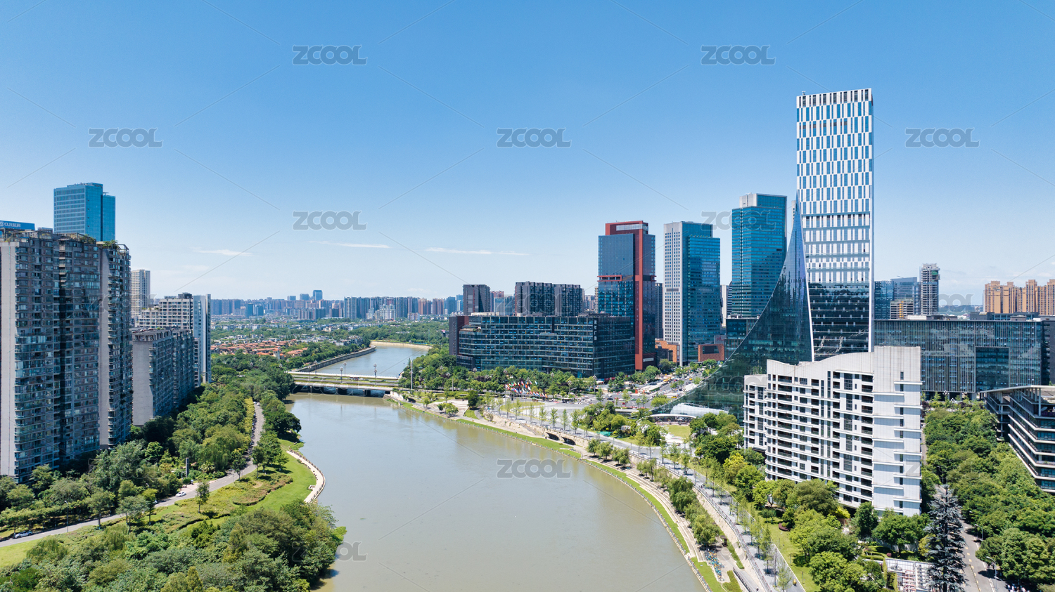 中國四川成都錦江畔歐洲中心周邊建筑航拍圖