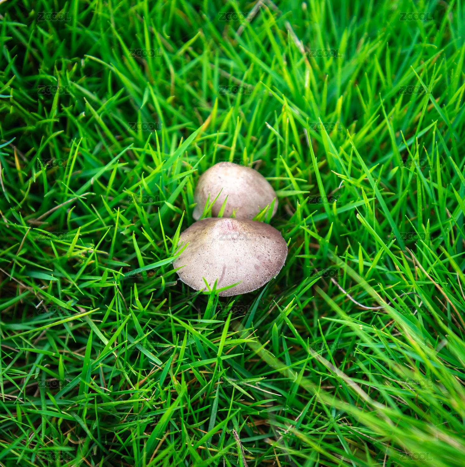 綠色草地里的兩朵真菌