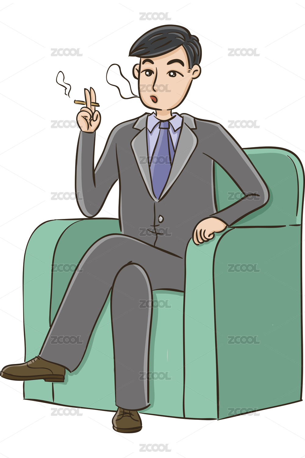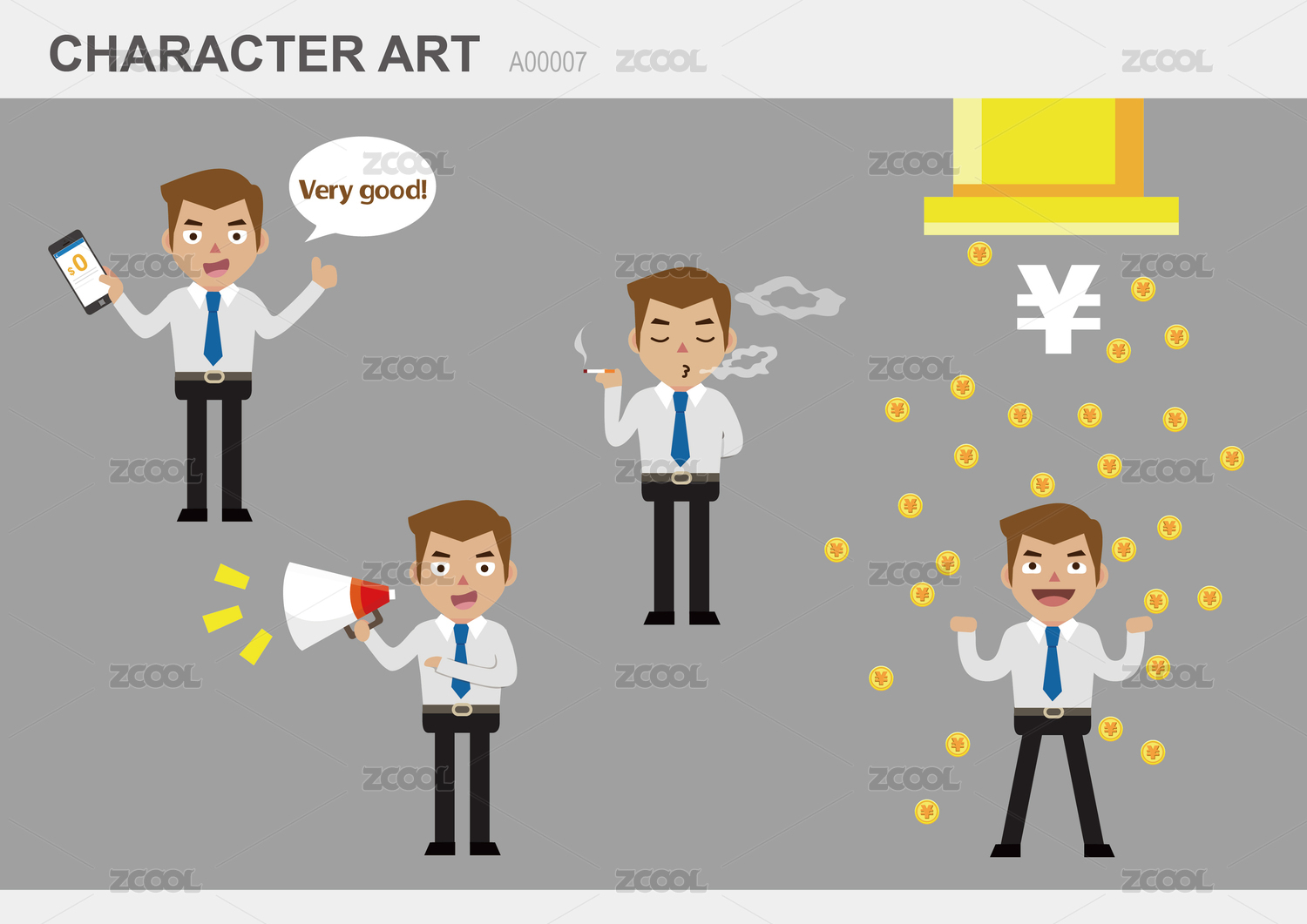 矢量卡通人物角色:電商男通道獲取金幣喇叭推廣淡定吸煙收益分享