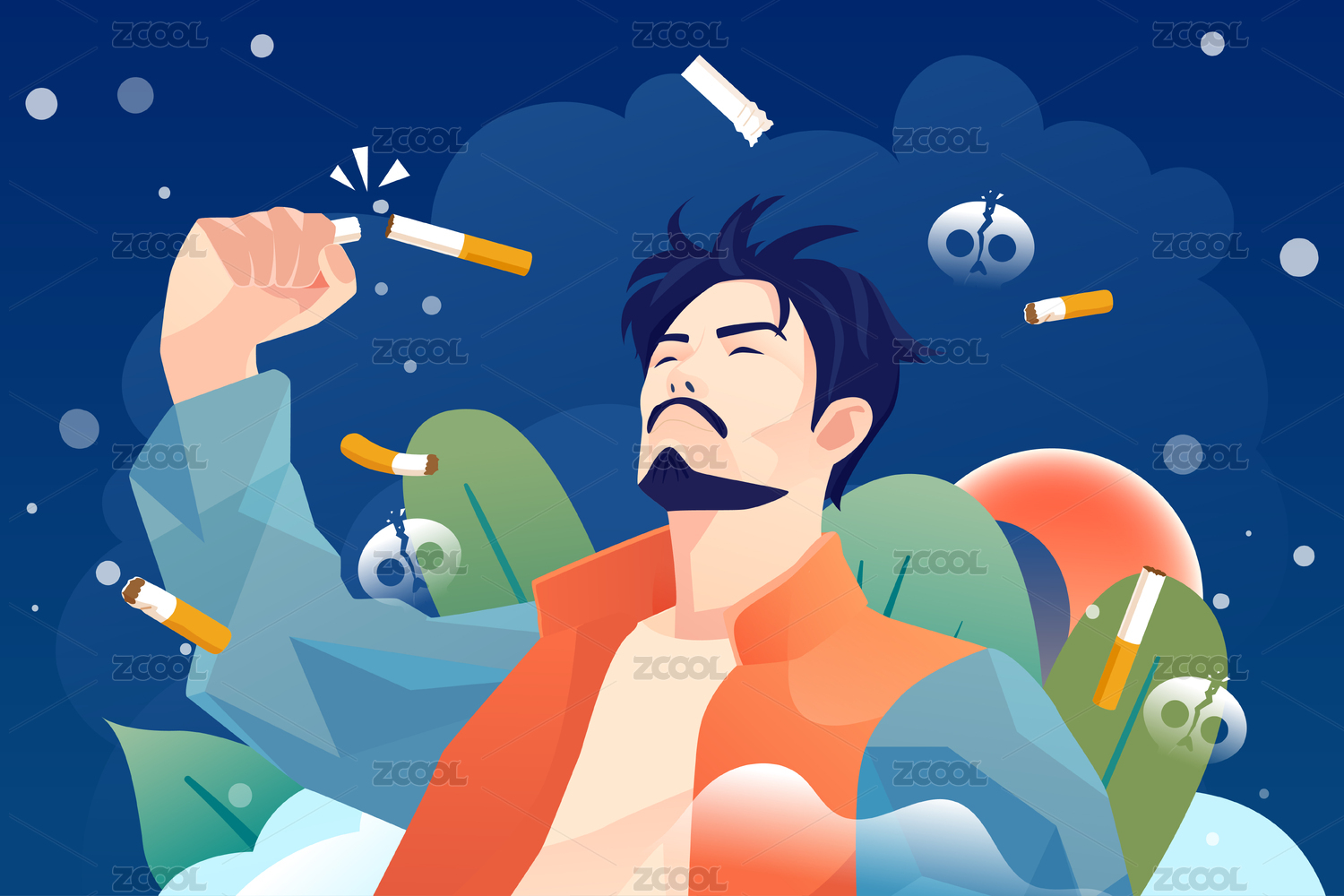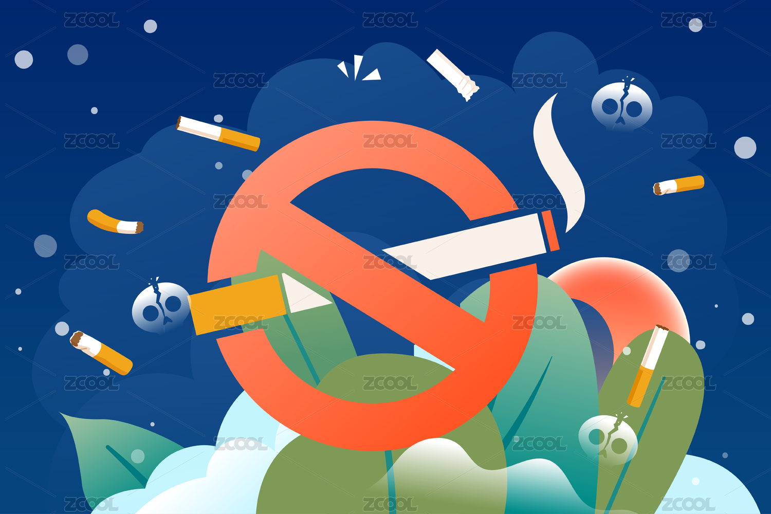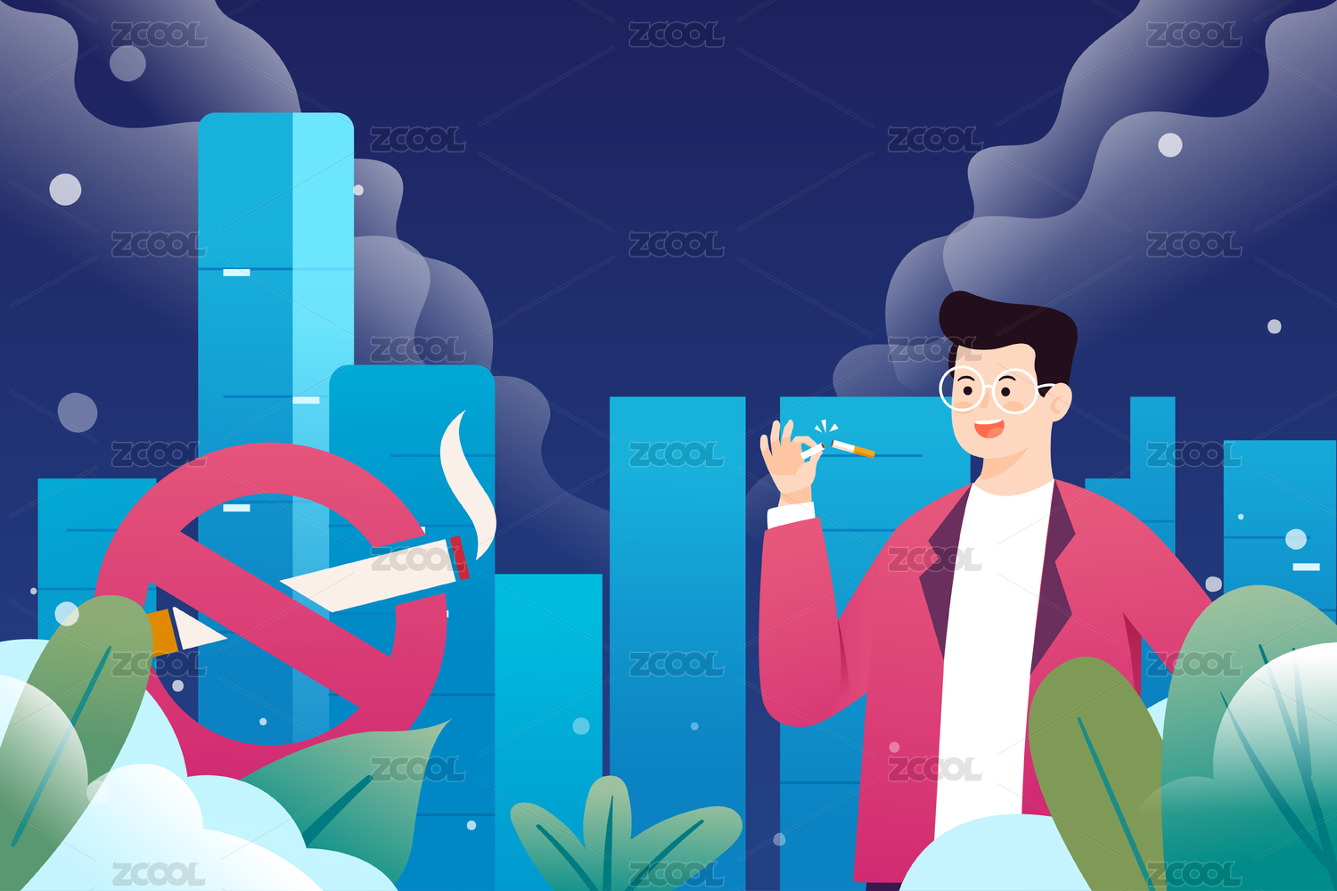 世界無煙日吸煙有害健康禁煙公益廣告插畫