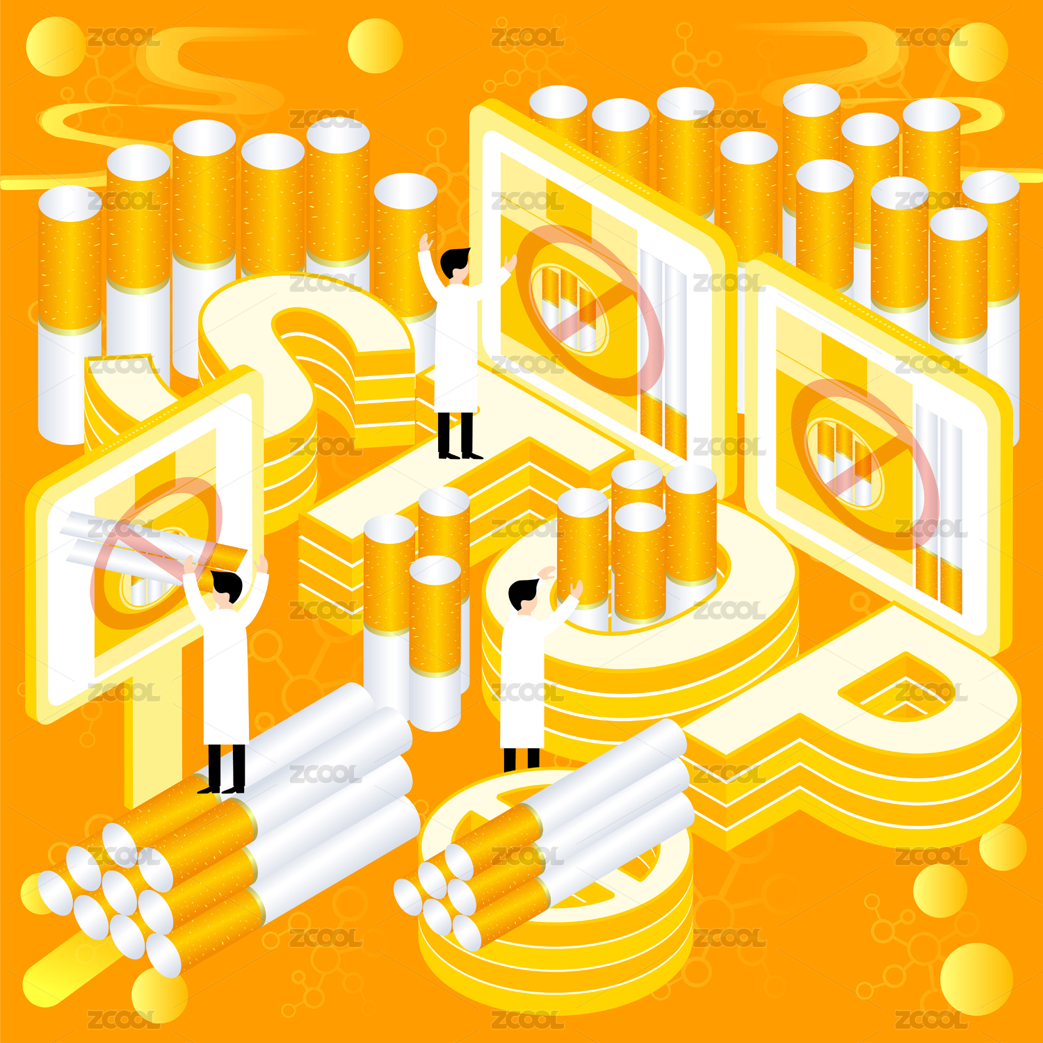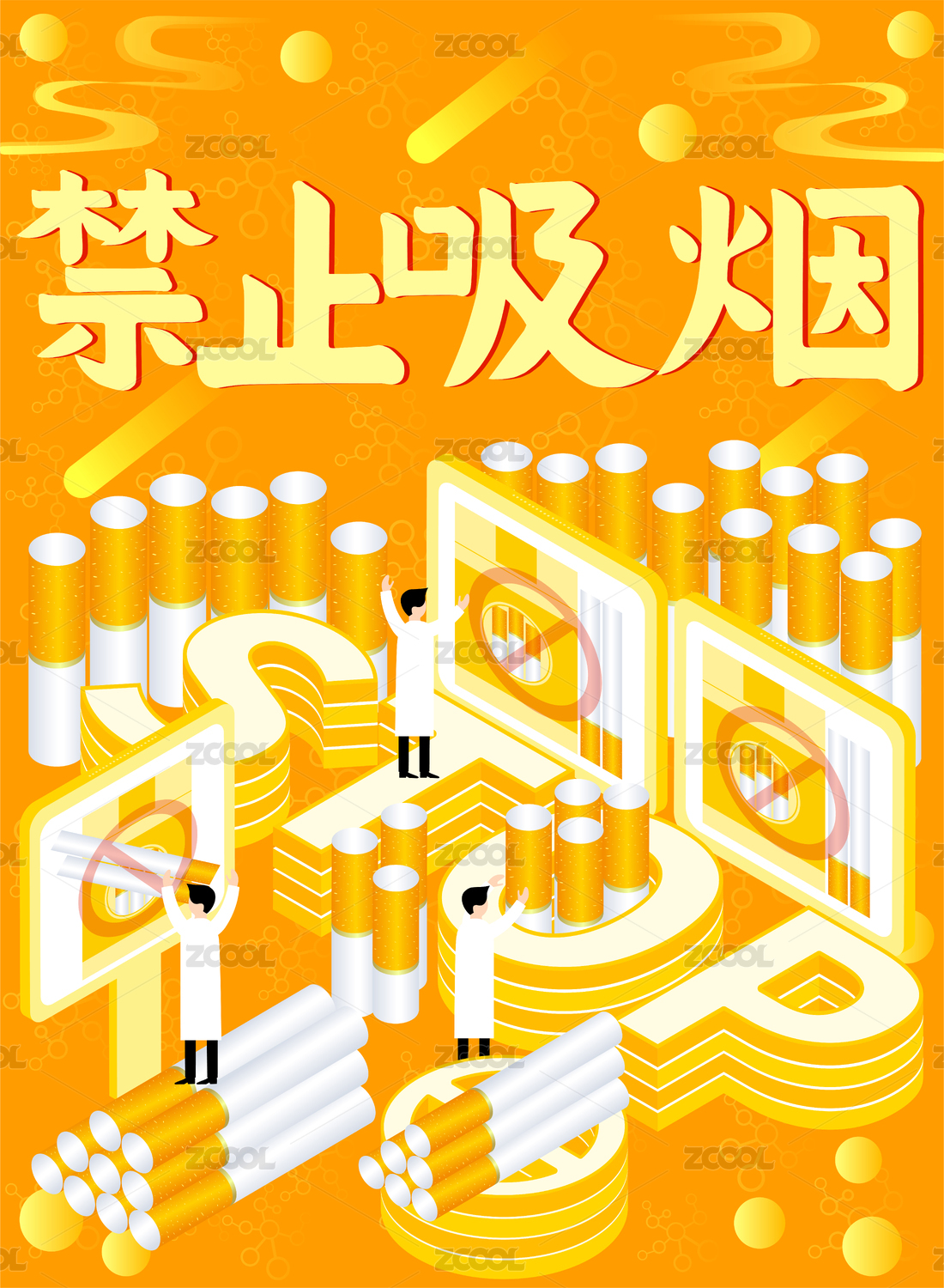 禁止吸煙立體字矢量插畫素材