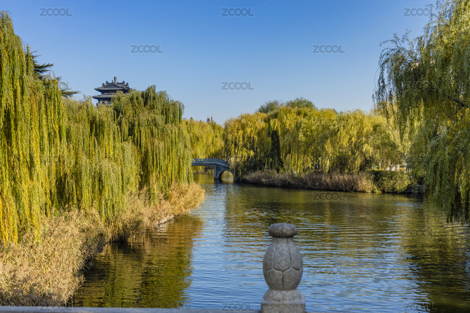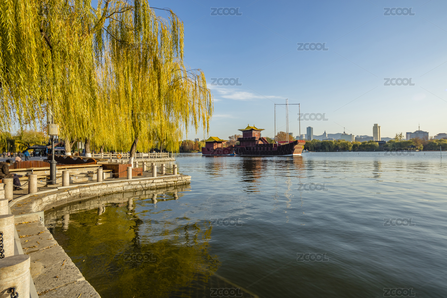中國(guó)山東濟(jì)南大明湖金色垂柳