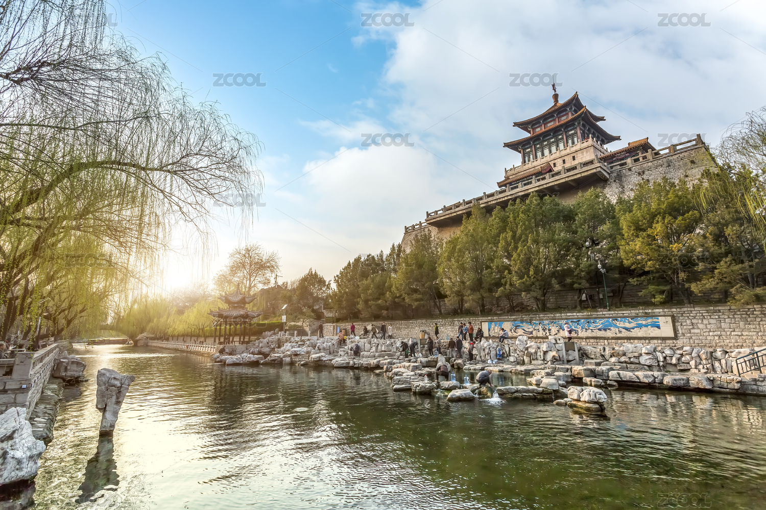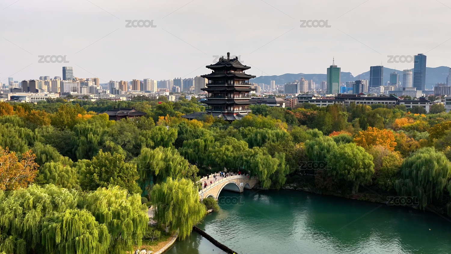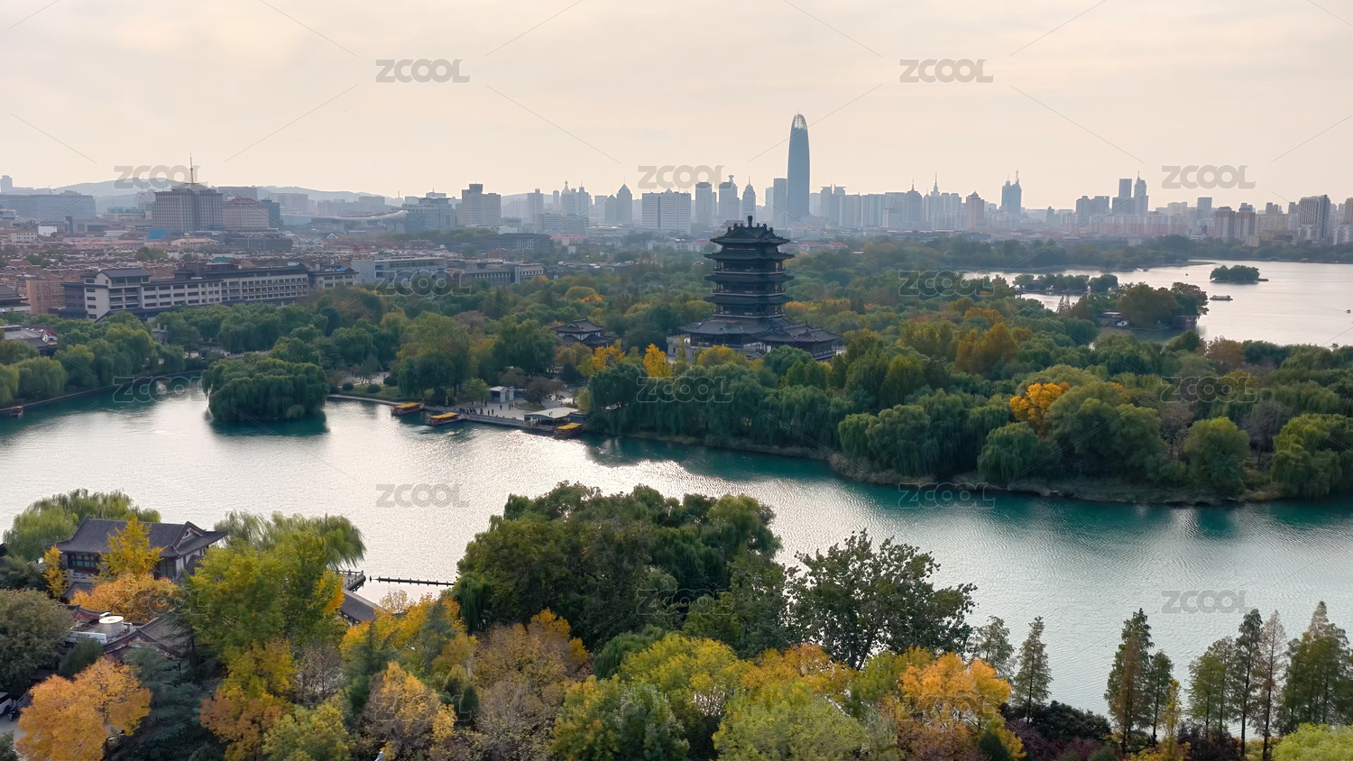 山東濟(jì)南大明湖風(fēng)景區(qū)黃昏夕陽(yáng)