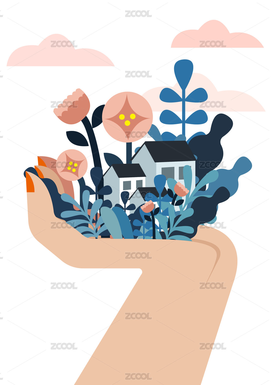 雙手呵護愛心矢量手繪海報