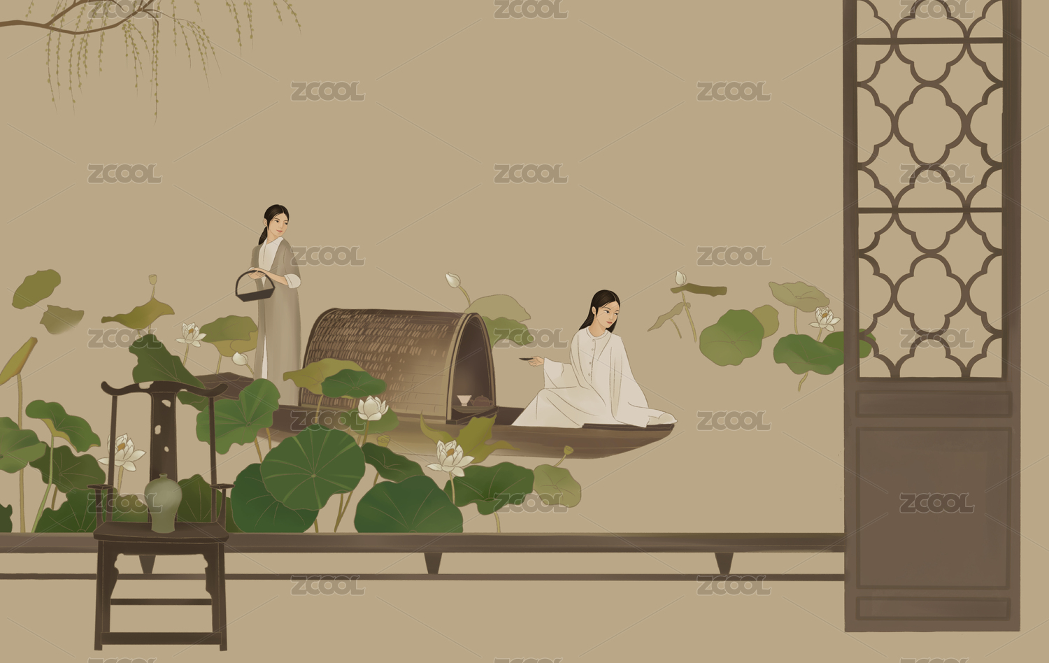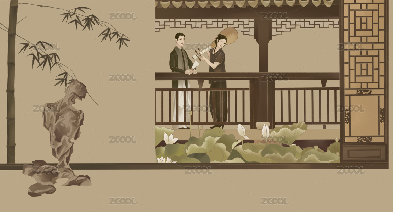 手繪古風(fēng)復(fù)古工筆淡彩風(fēng)全身人物
