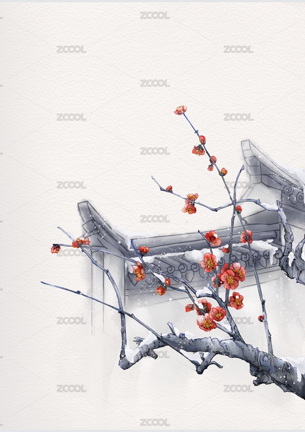 月下雪梅圖中國工筆花鳥背景