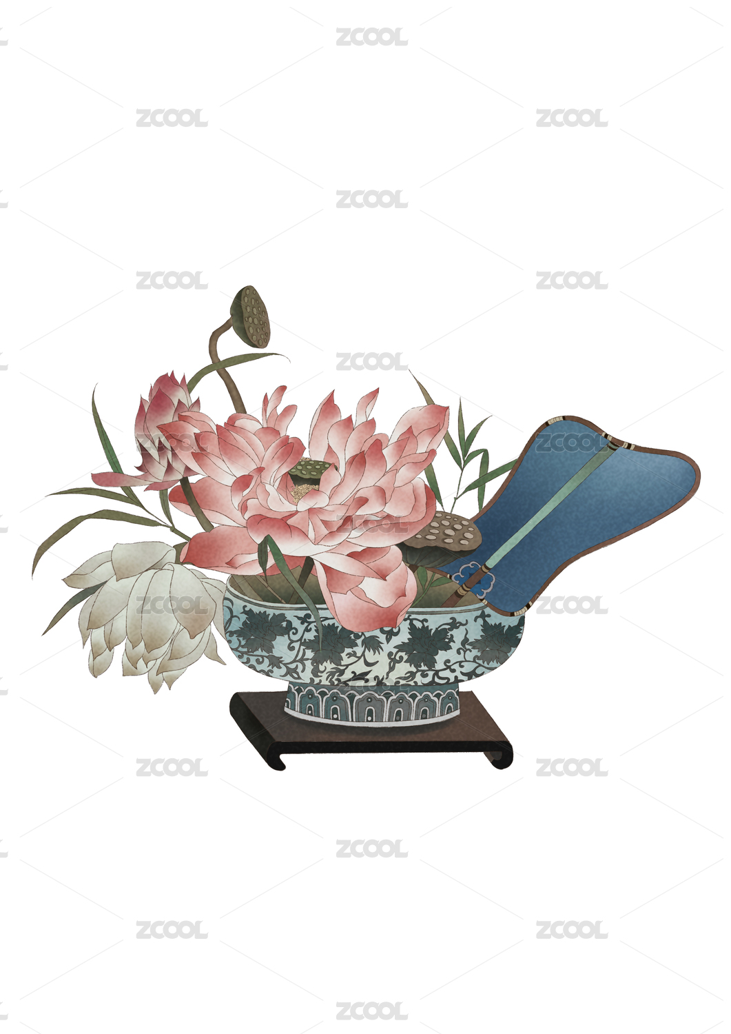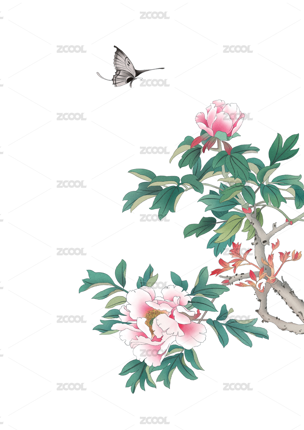 手繪工筆牡丹