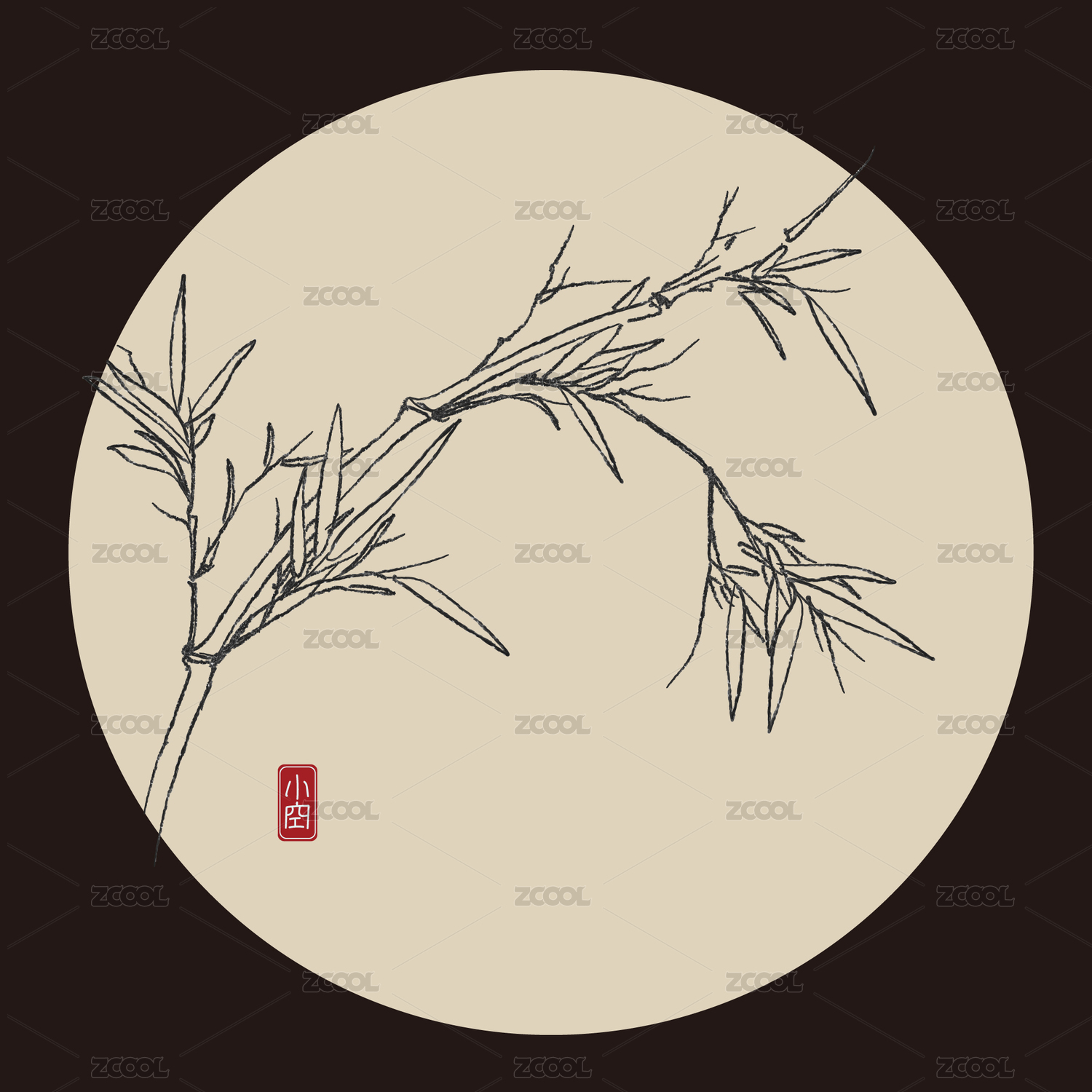 工筆白描手繪線稿矢量竹子中國畫