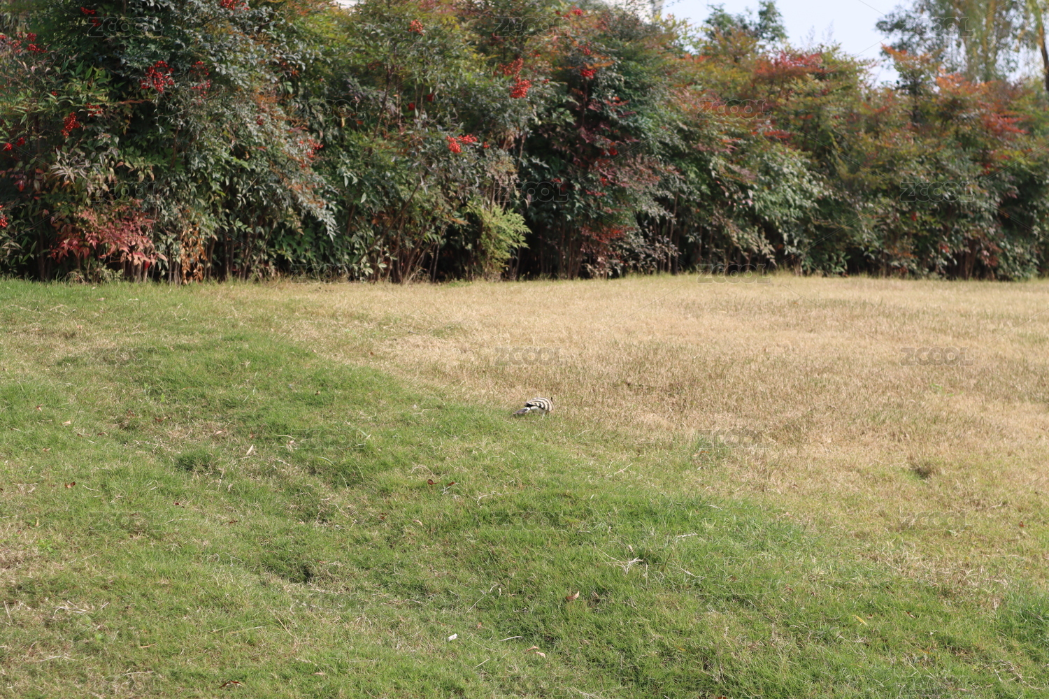 戶外公園草坪上的鳥(niǎo)類馬島戴勝。