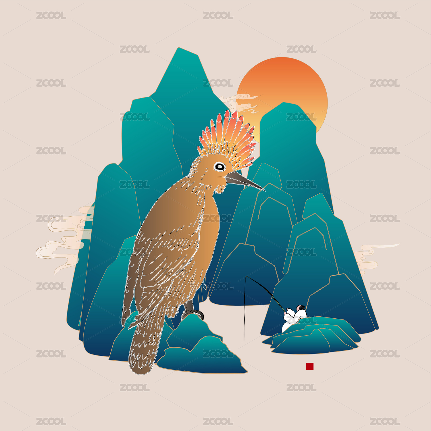 國(guó)潮24節(jié)氣谷雨戴勝吉祥中國(guó)風(fēng)矢量插畫