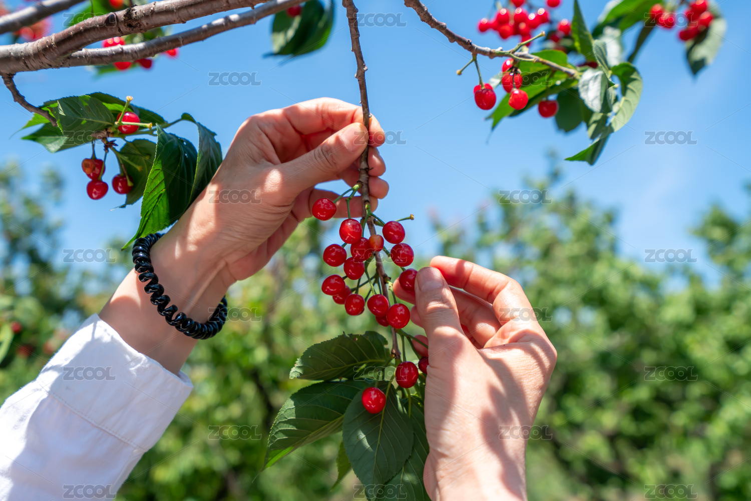 手摘櫻桃的特寫(xiě)畫(huà)面