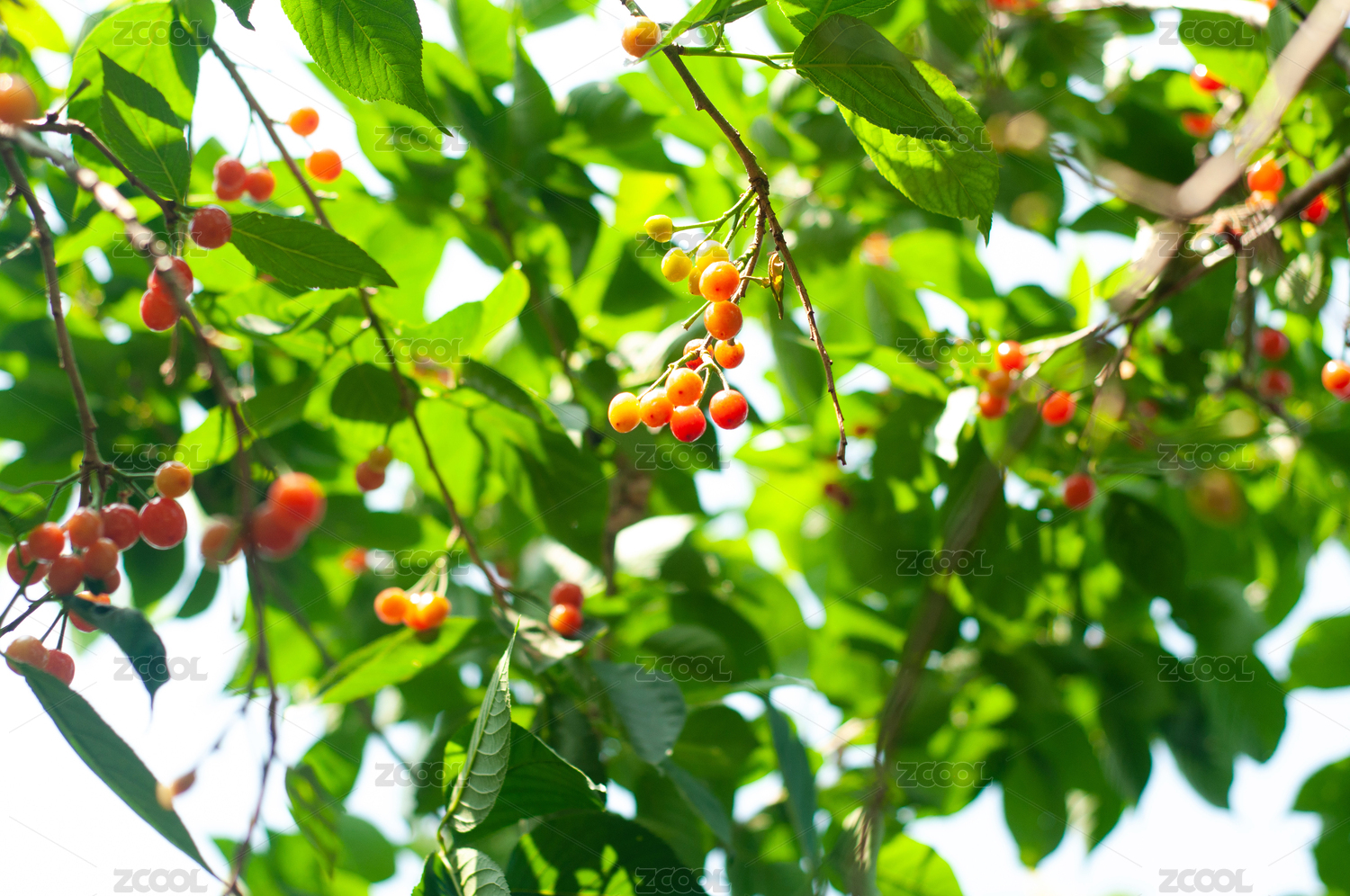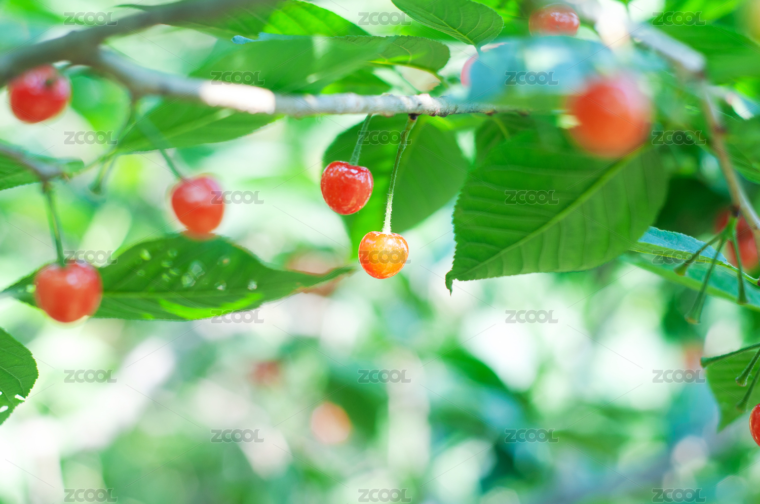 枝頭成熟的櫻桃特寫(xiě)