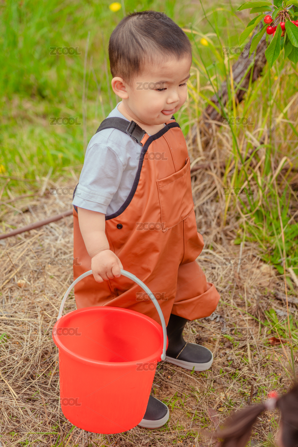 山頂摘櫻桃的小男孩