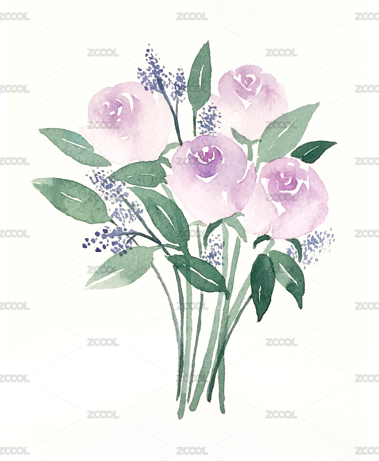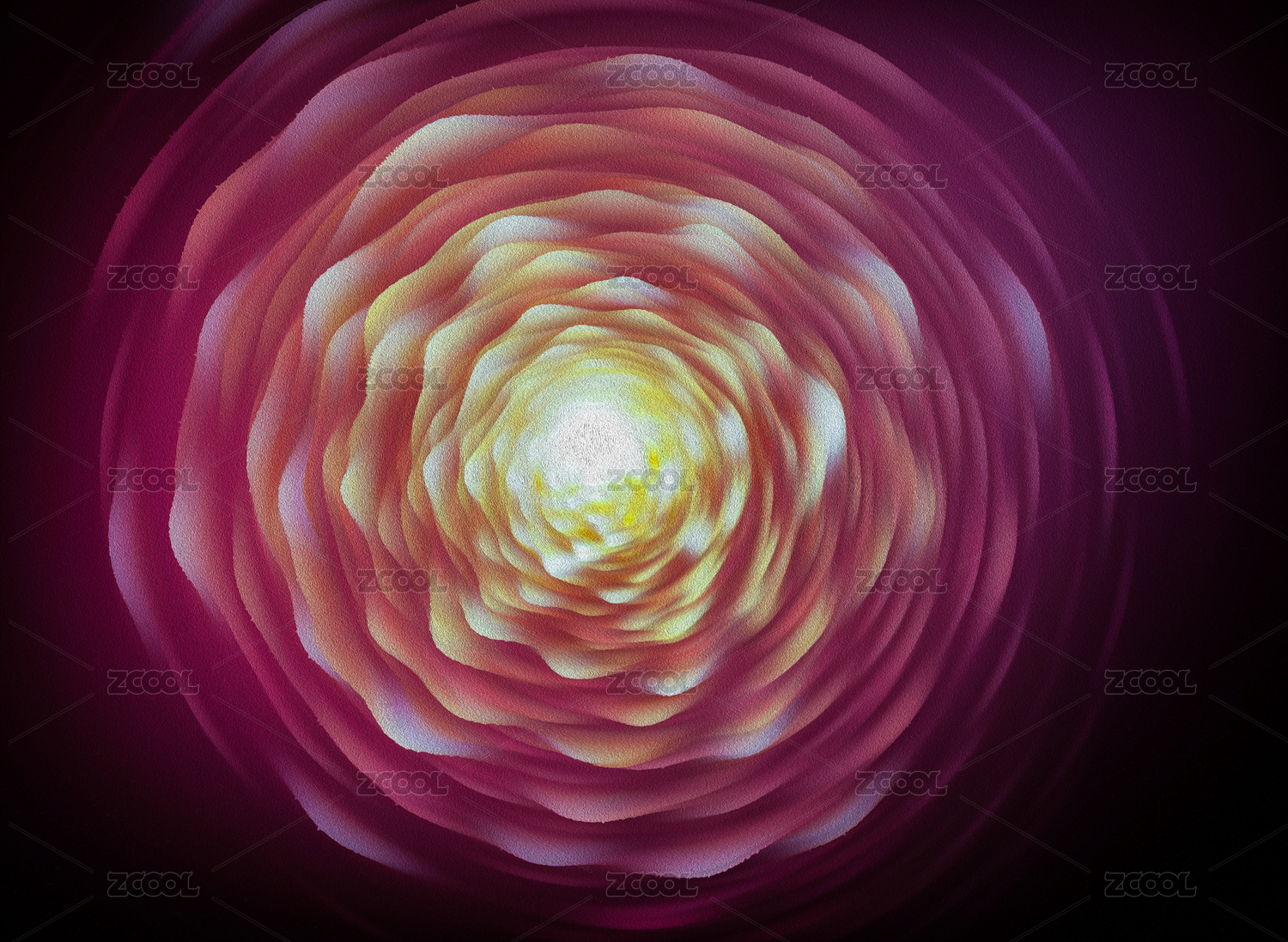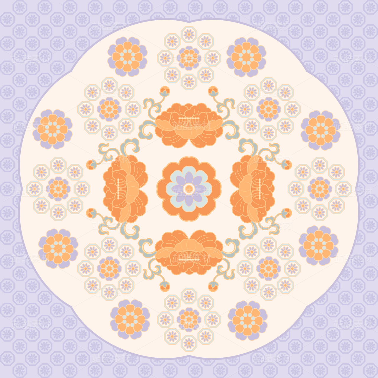 牡丹花團花橙色粉紫色中國紋樣國潮插畫